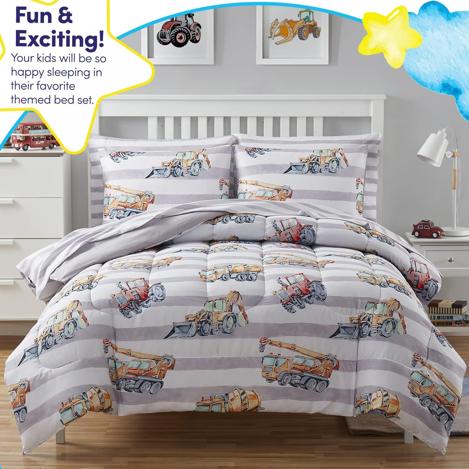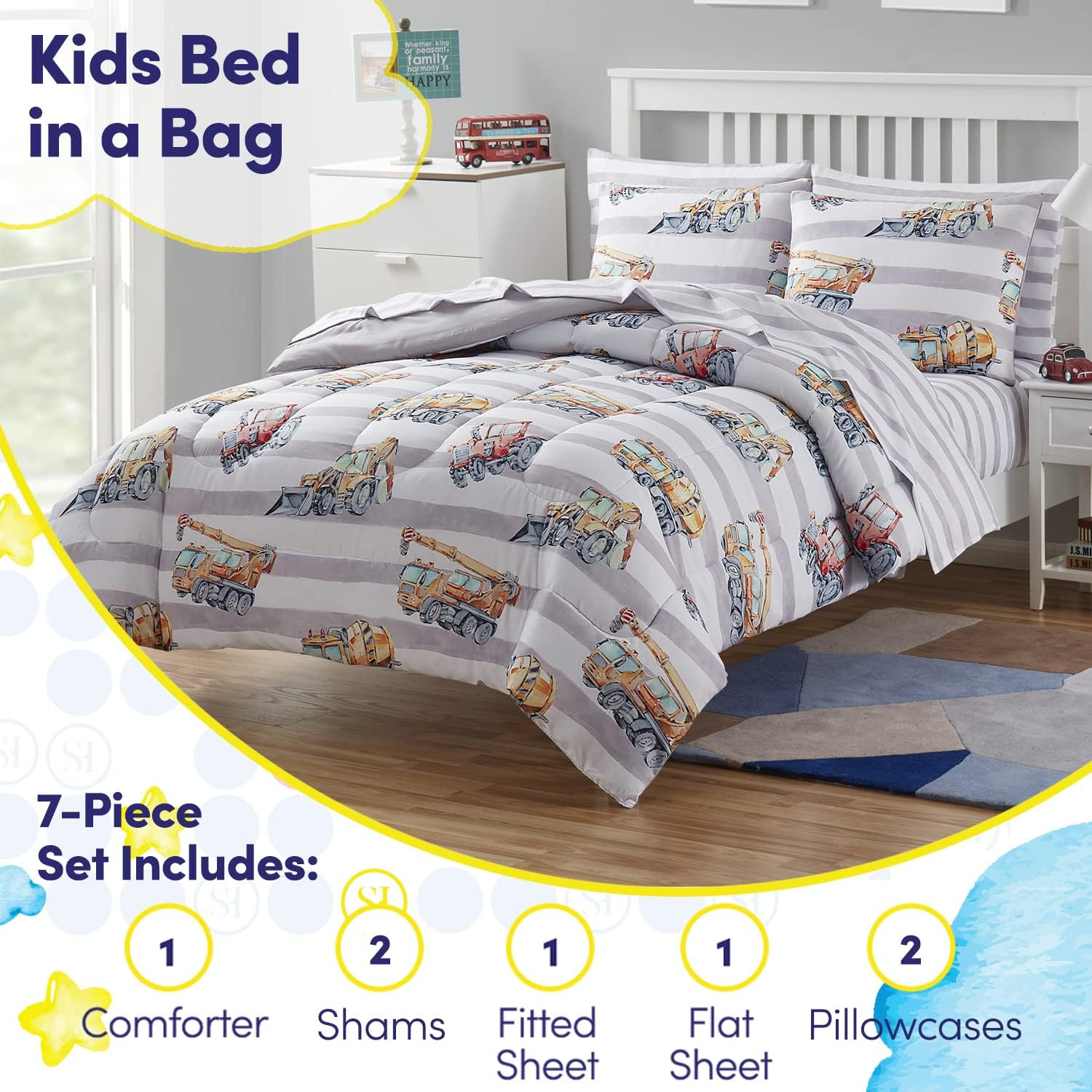 Kids Bedding Set Bed in a Bag for Boys and Girls Toddlers Printed Sheet Set and