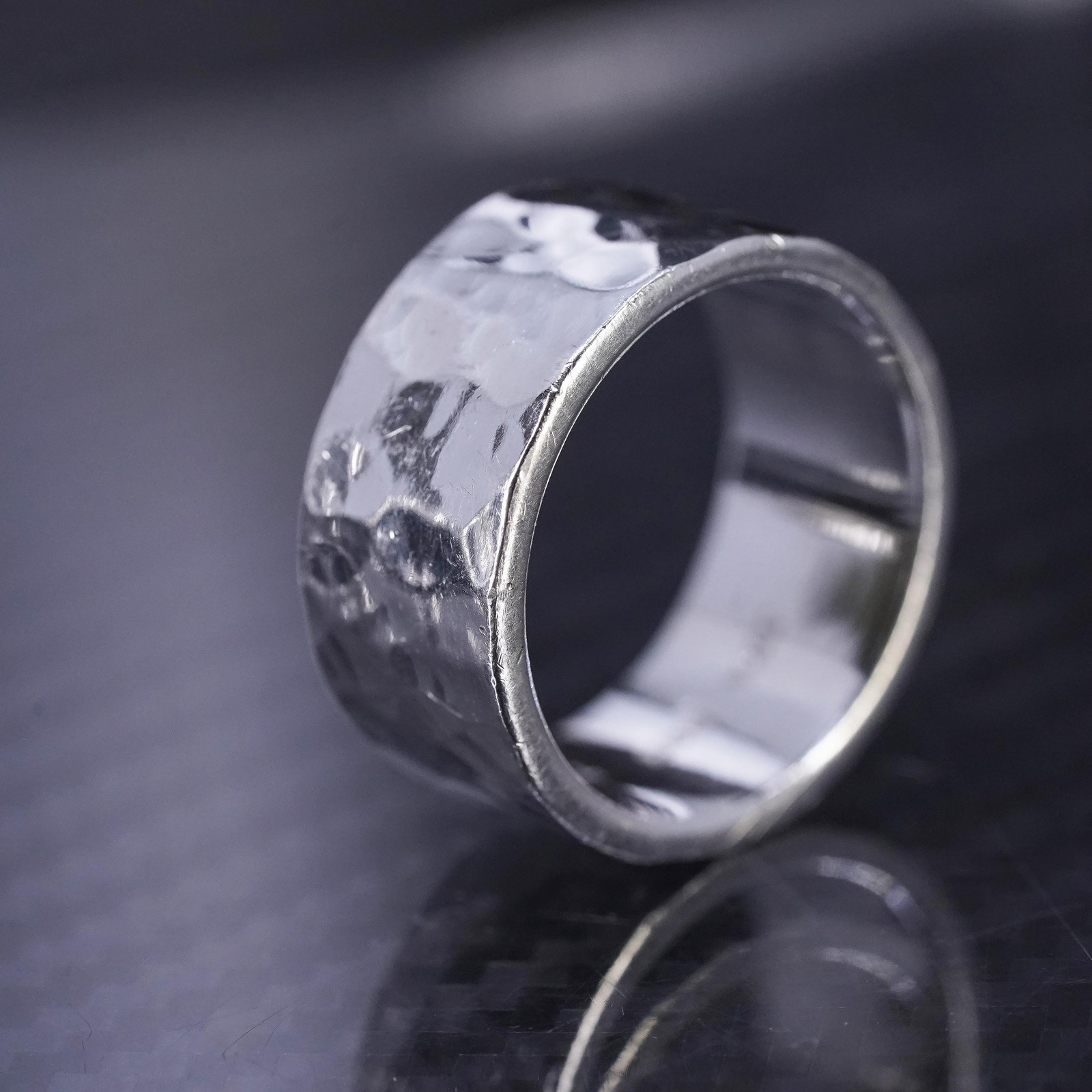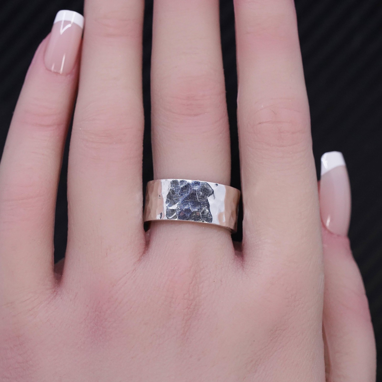 size 7.5, vintage sterling silver 925 handmade hammered ring wide band
