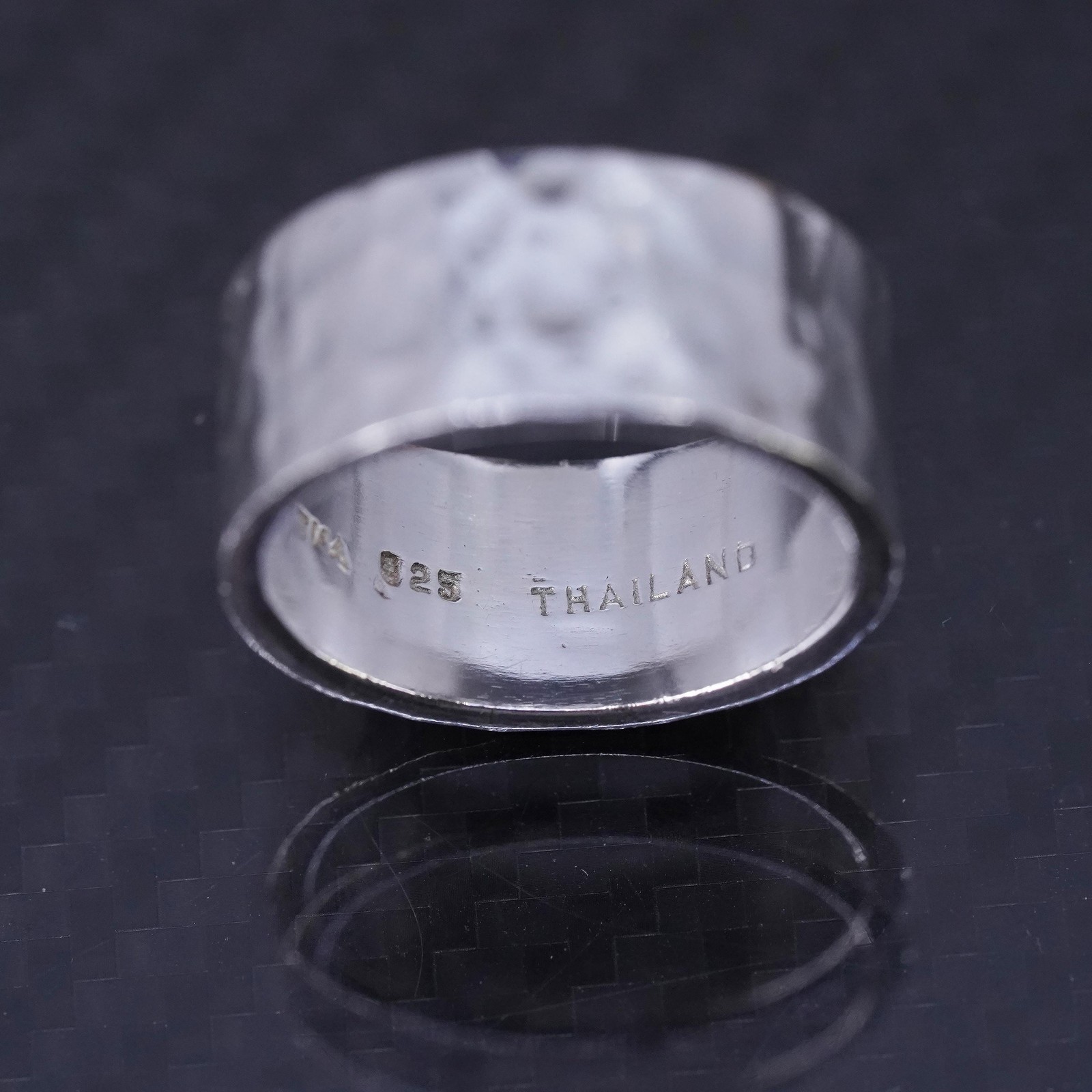как выглядит size 7.5, vintage sterling silver 925 handmade hammered ring wide band фото