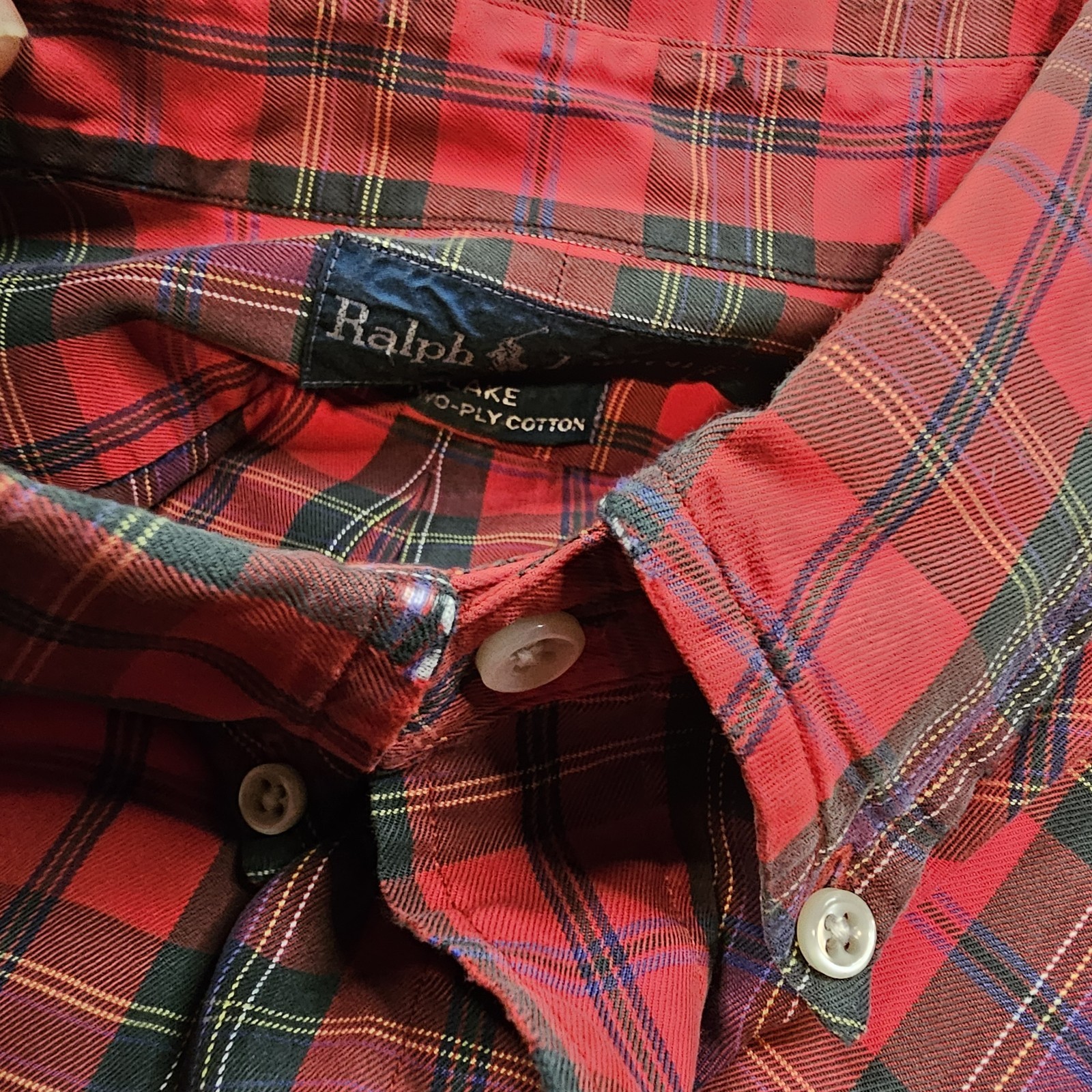 Polo Ralph Lauren Shirt Mens Large Vintage Tartan Plaid Preppy Oxford 90s Retro