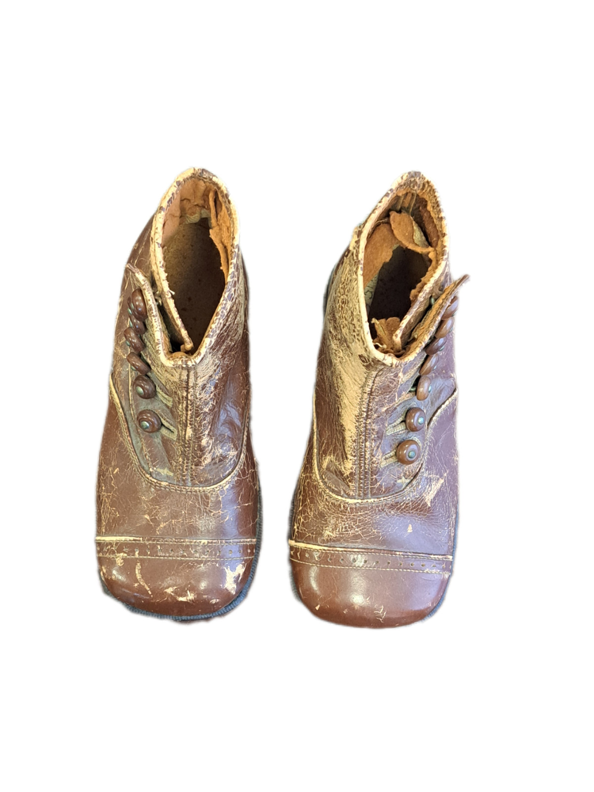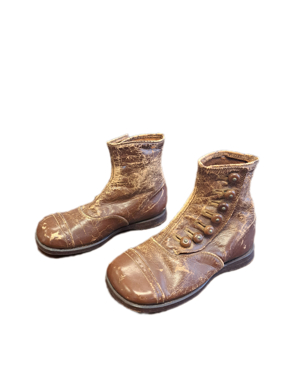 Victorian Late 1800's Brown Leather High Button Child's Boots 7 Button Shoe Kids