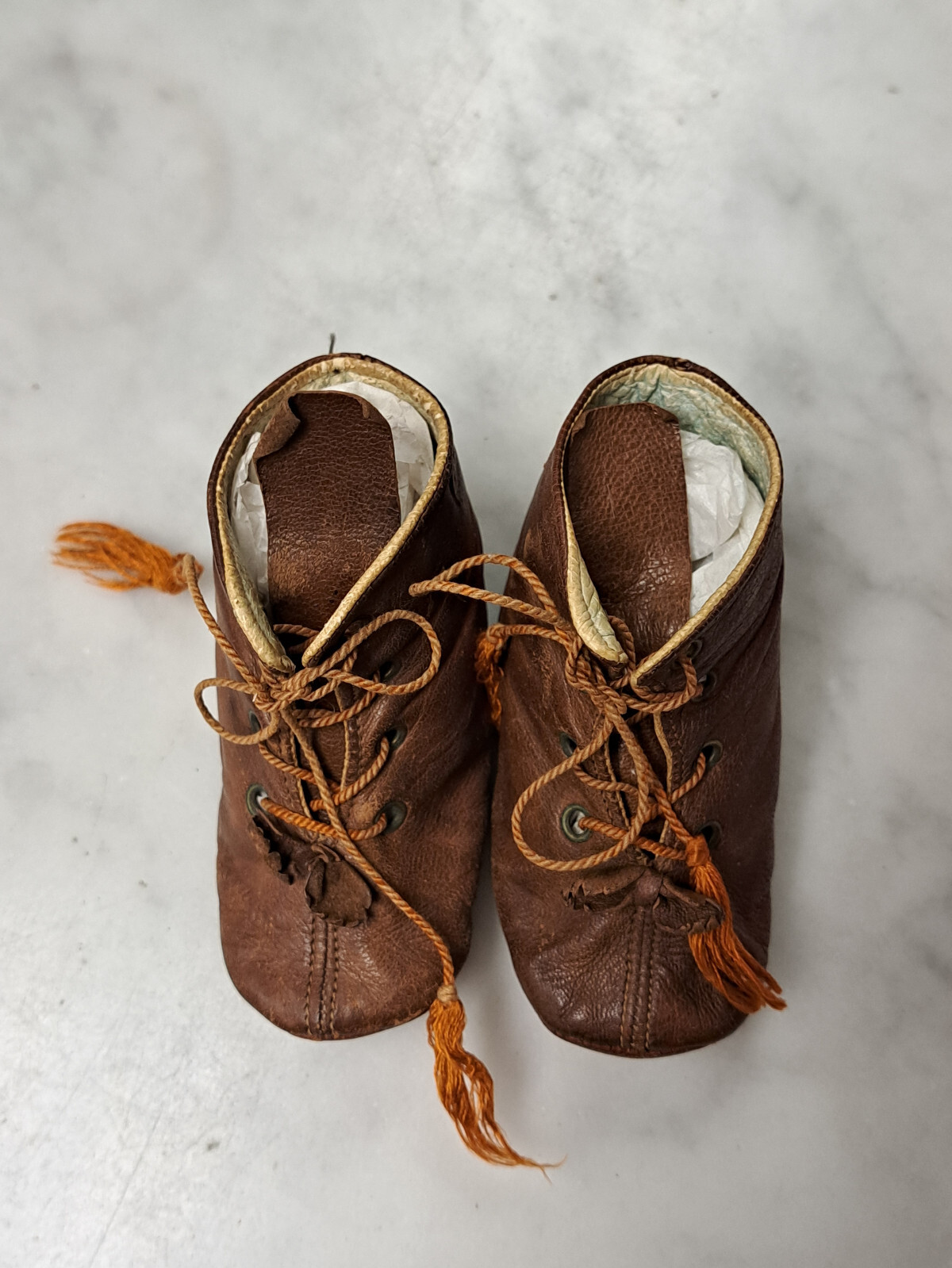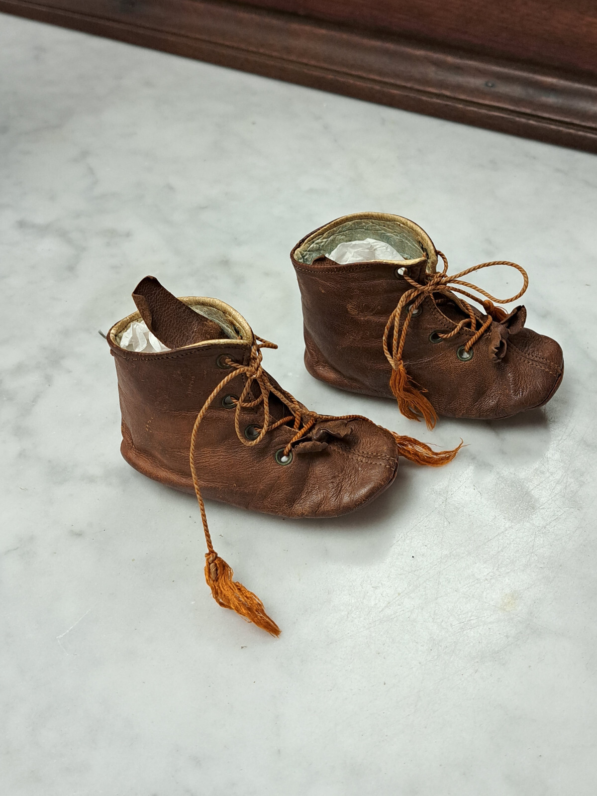 Antique Late 1800's Victorian Leather Doll Baby Infant Shoes Boots