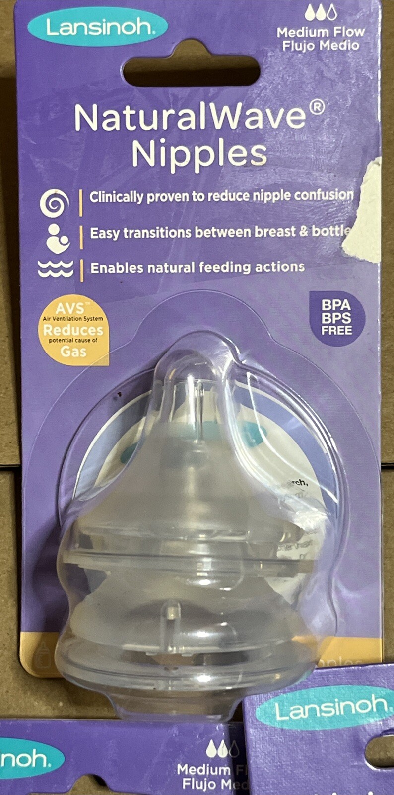 3 Packs Lansinoh Natural Wave Nipples Medium Flow NaturalWave Tetinas 6 Total