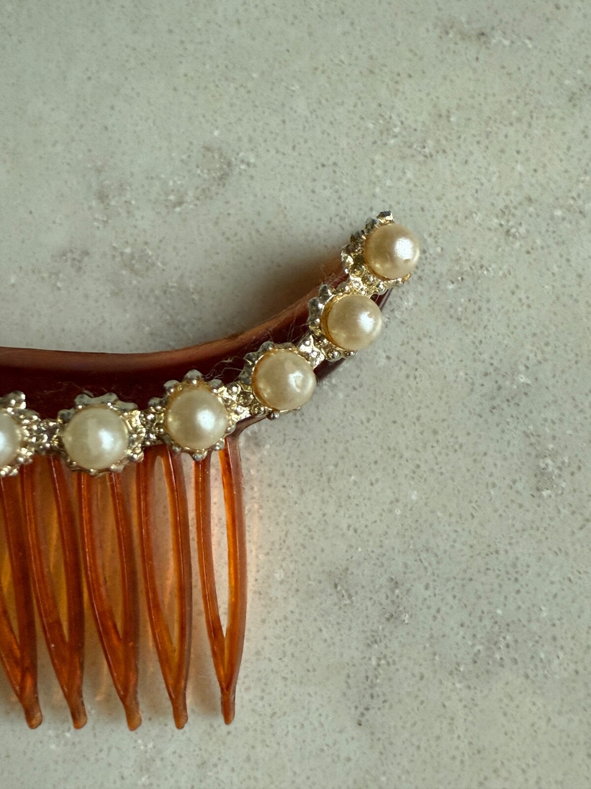 Vintage Hair Comb Embellished With Faux Pearls Beads