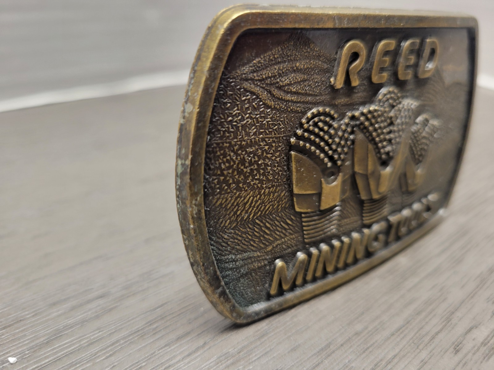 Vintage Reed Mining Tools Brass Belt Buckle 1986