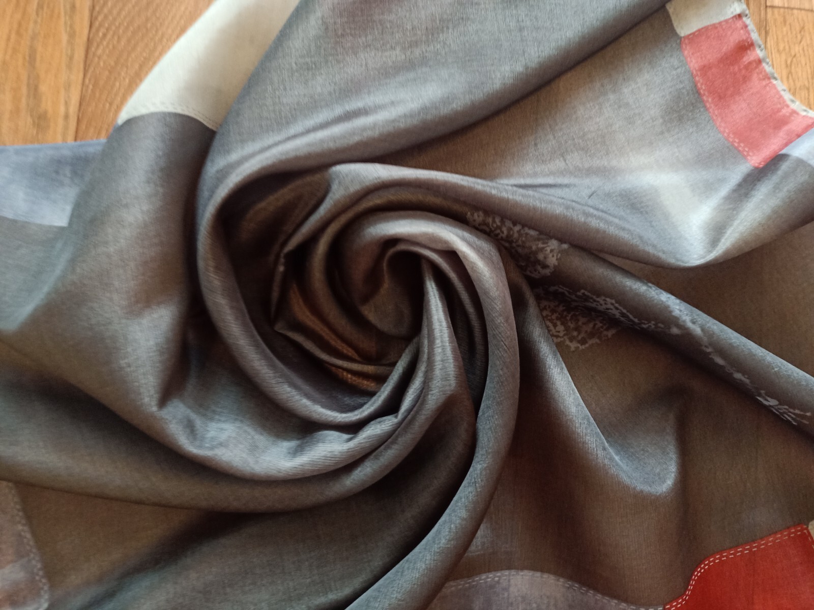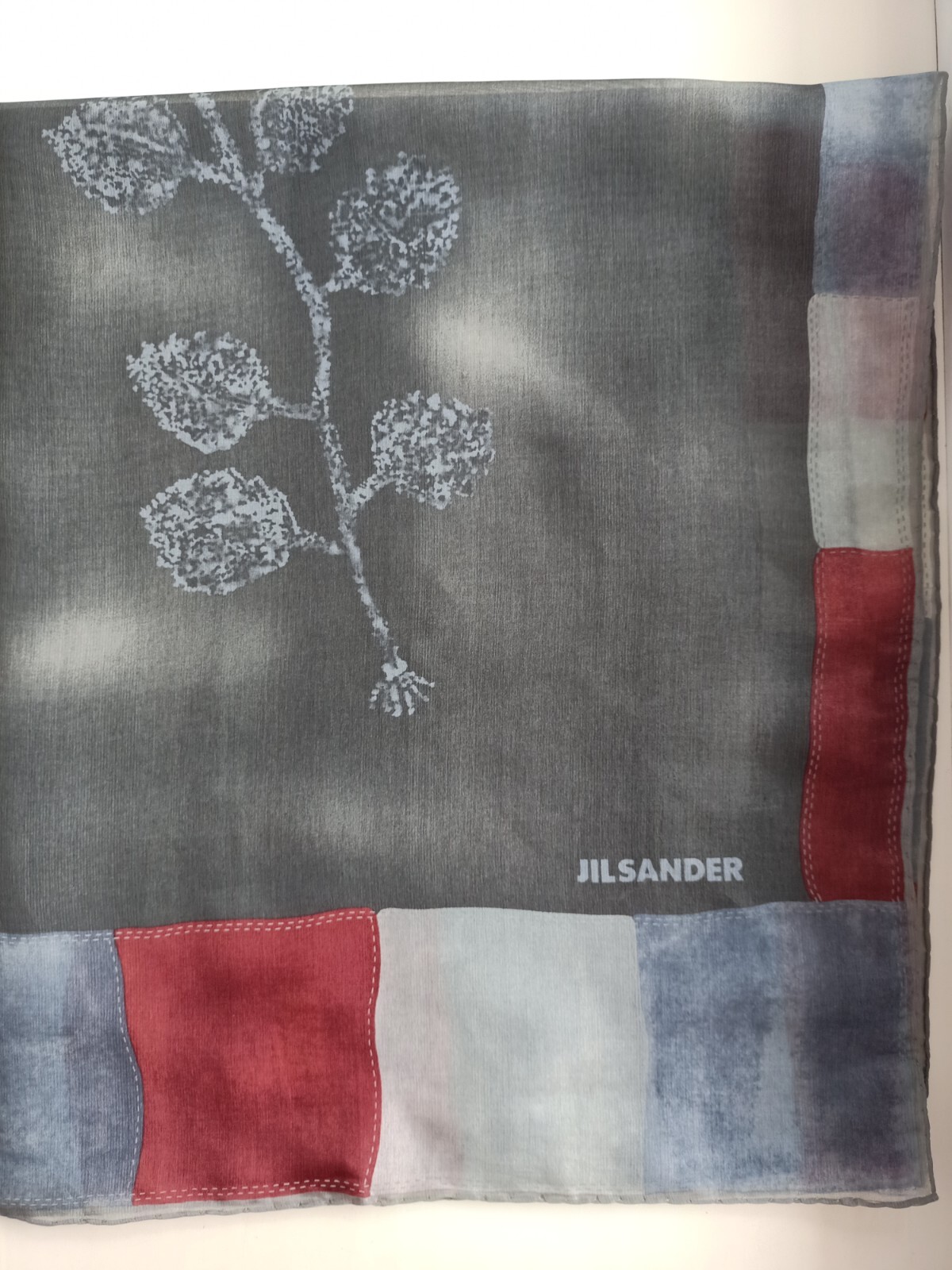 как выглядит JIL SANDER Gray blue red minimal silk square scarf 85 86 cm фото