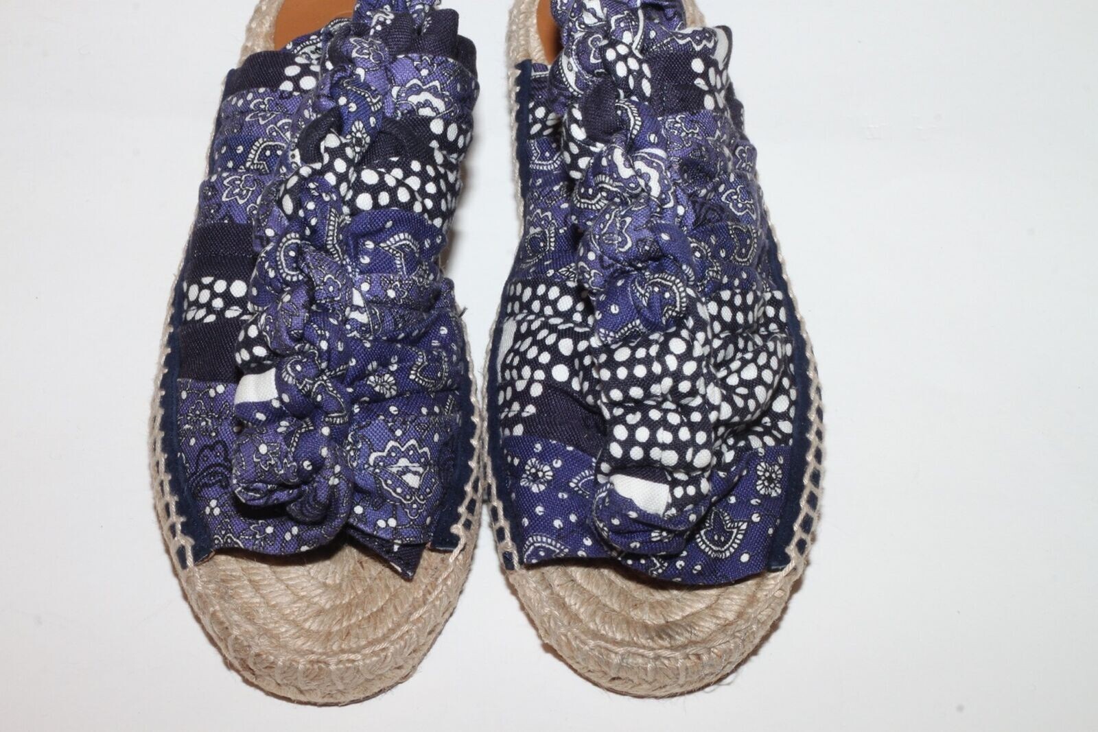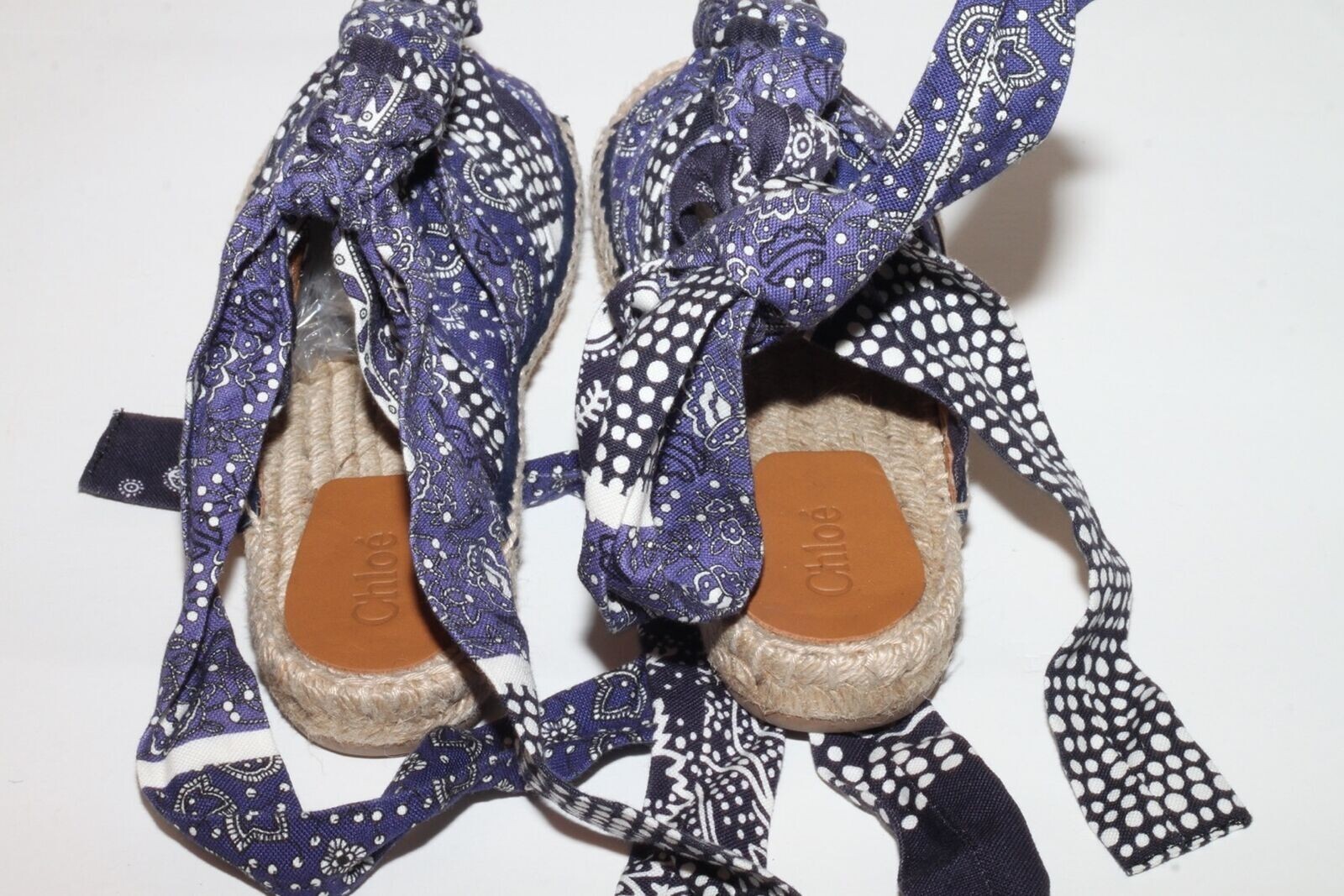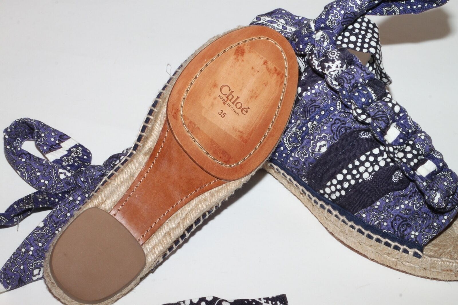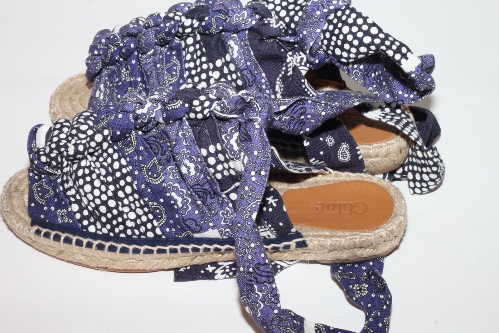 как выглядит CHLOE Blue Knotted Printed Ankle Strap Espadrilles Sandals Size 35 фото
