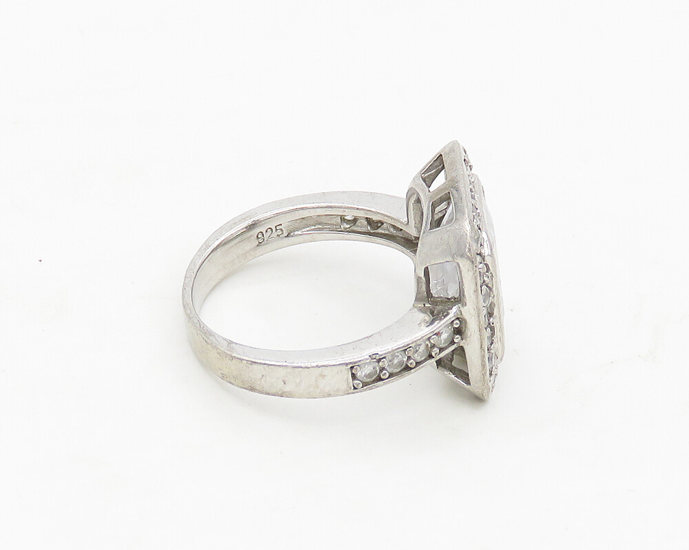 925 Sterling Silver Sparkling Cubic Zirconia Square Band Ring Sz 5.5 RG17370