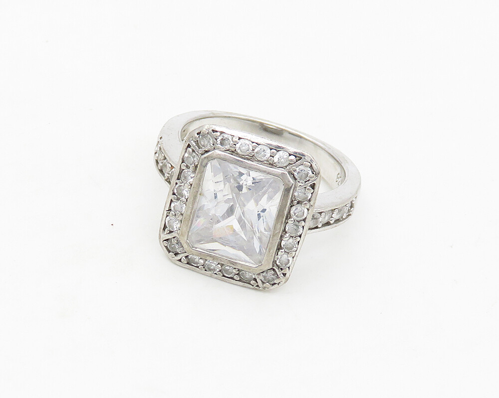 как выглядит 925 Sterling Silver Sparkling Cubic Zirconia Square Band Ring Sz 5.5 RG17370 фото