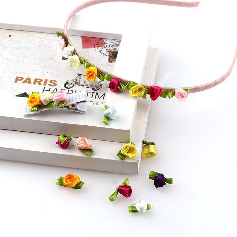 как выглядит 100 pcs Pink Satin Ribbon Rose w/Leaf Wedding Bride Appliques Craft DIY фото