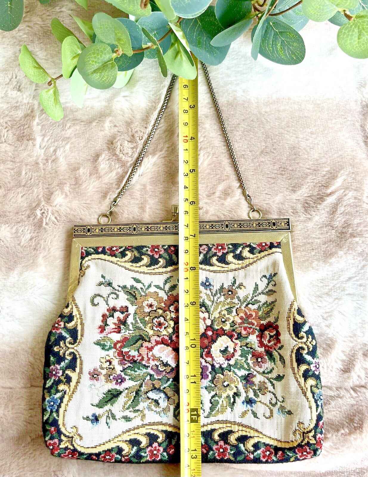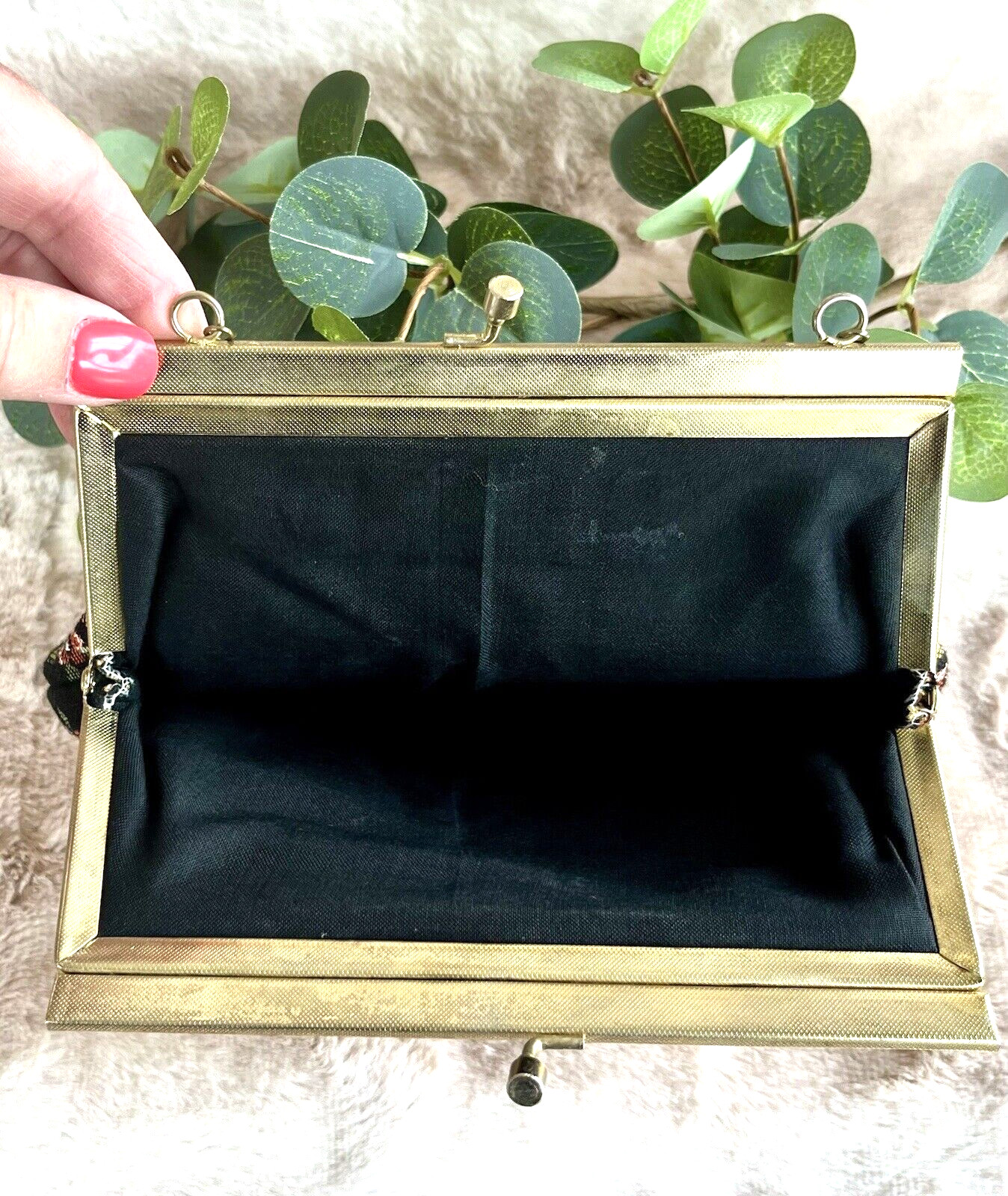 как выглядит VTG MULTICOLOR FLORAL TAPESTRY GOLD CHAIN METAL FRAME PURSE w/ Black Lining фото