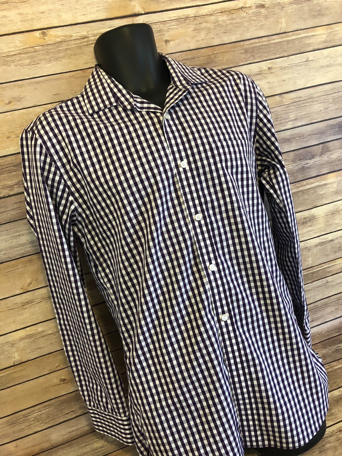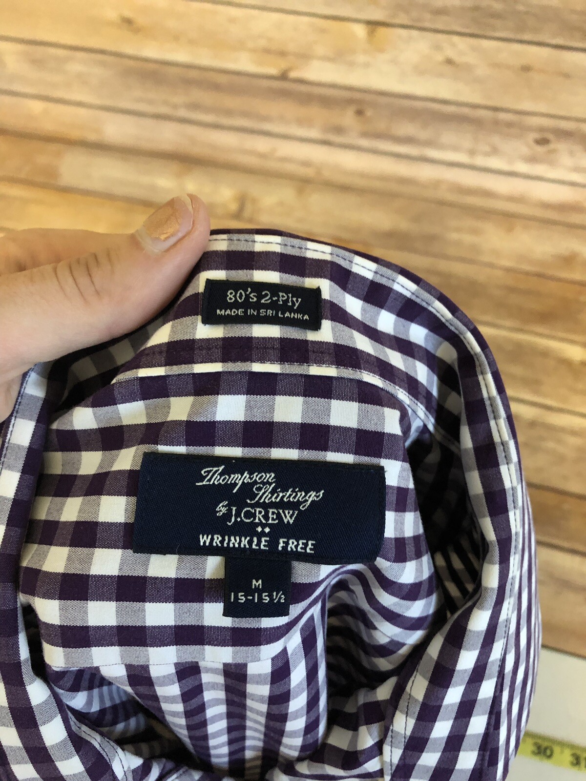 J CREW Mens Shirt Winkle Free Size 15-15.5 Long Sleeve Purple Plaid Dress Button