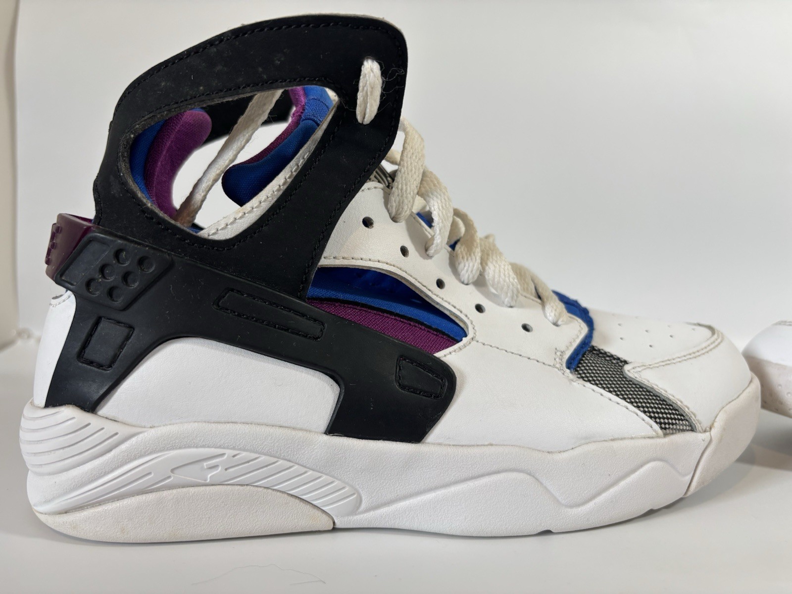 Nike Boys 5.5Y Air Flight Huarache 705281-100 White Purple Blue Running Shoes