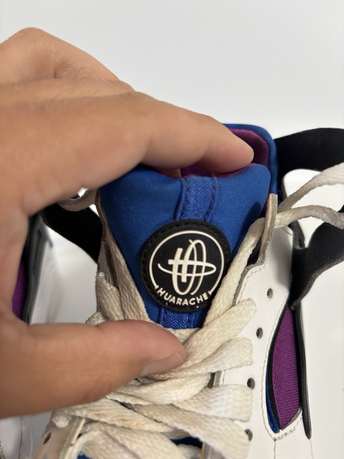 как выглядит Nike Boys 5.5Y Air Flight Huarache 705281-100 White Purple Blue Running Shoes фото
