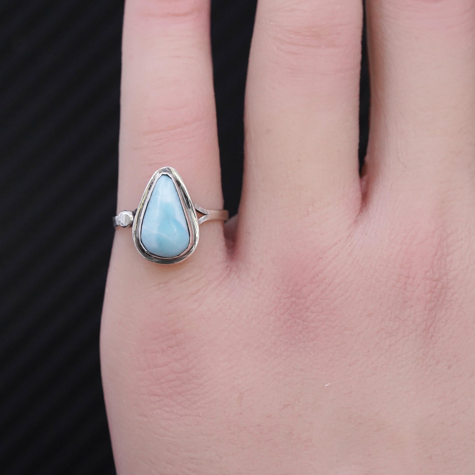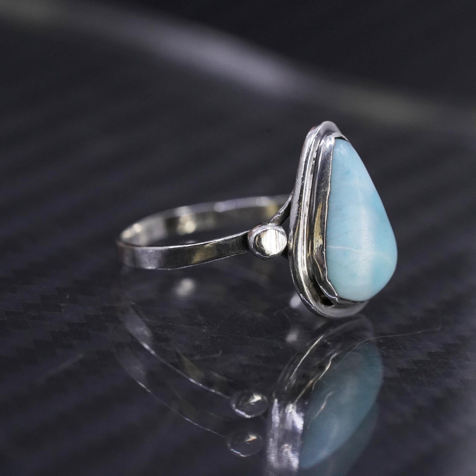 Size 6, vintage sterling silver 925 handmade ring with teardrop larimar