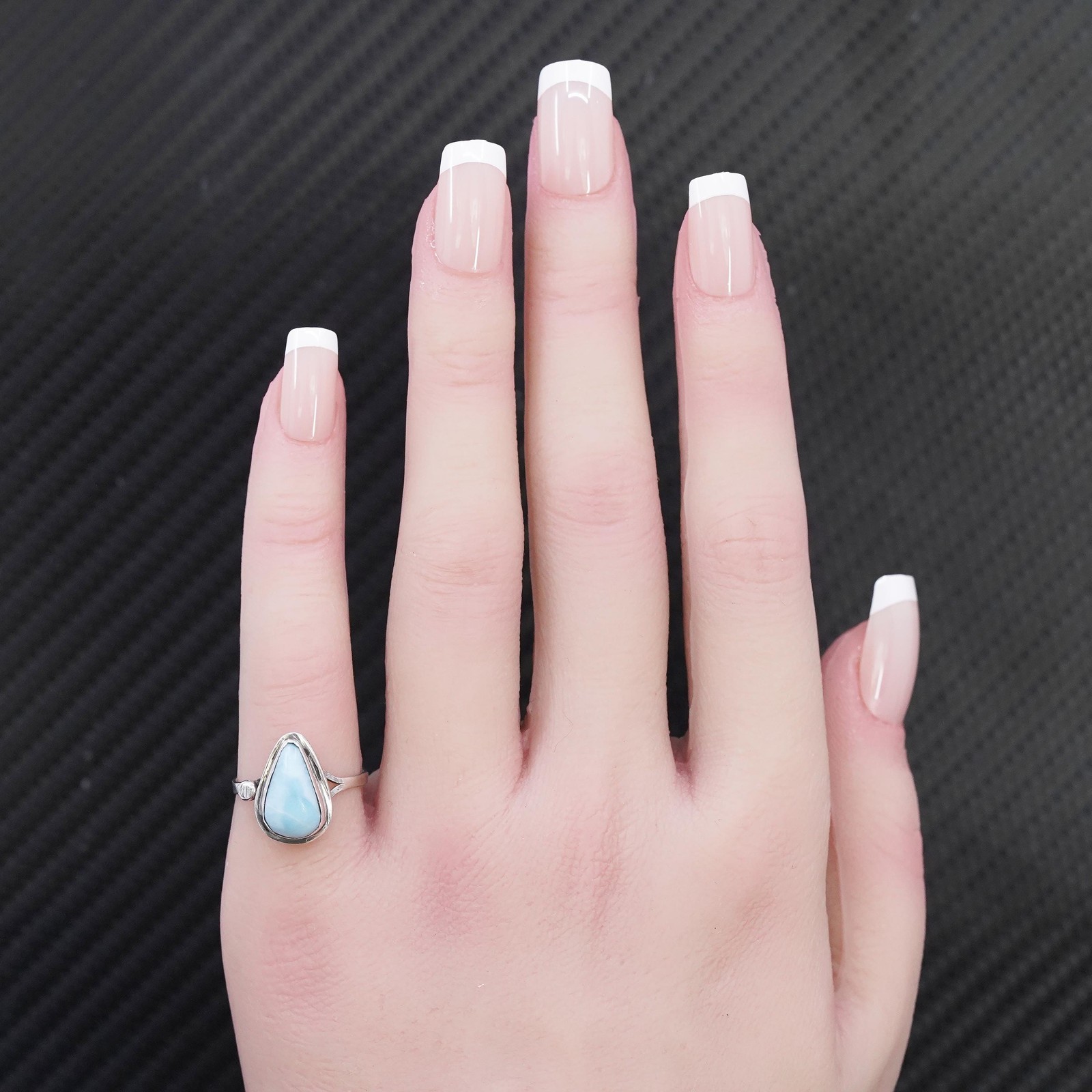 как выглядит Size 6, vintage sterling silver 925 handmade ring with teardrop larimar фото