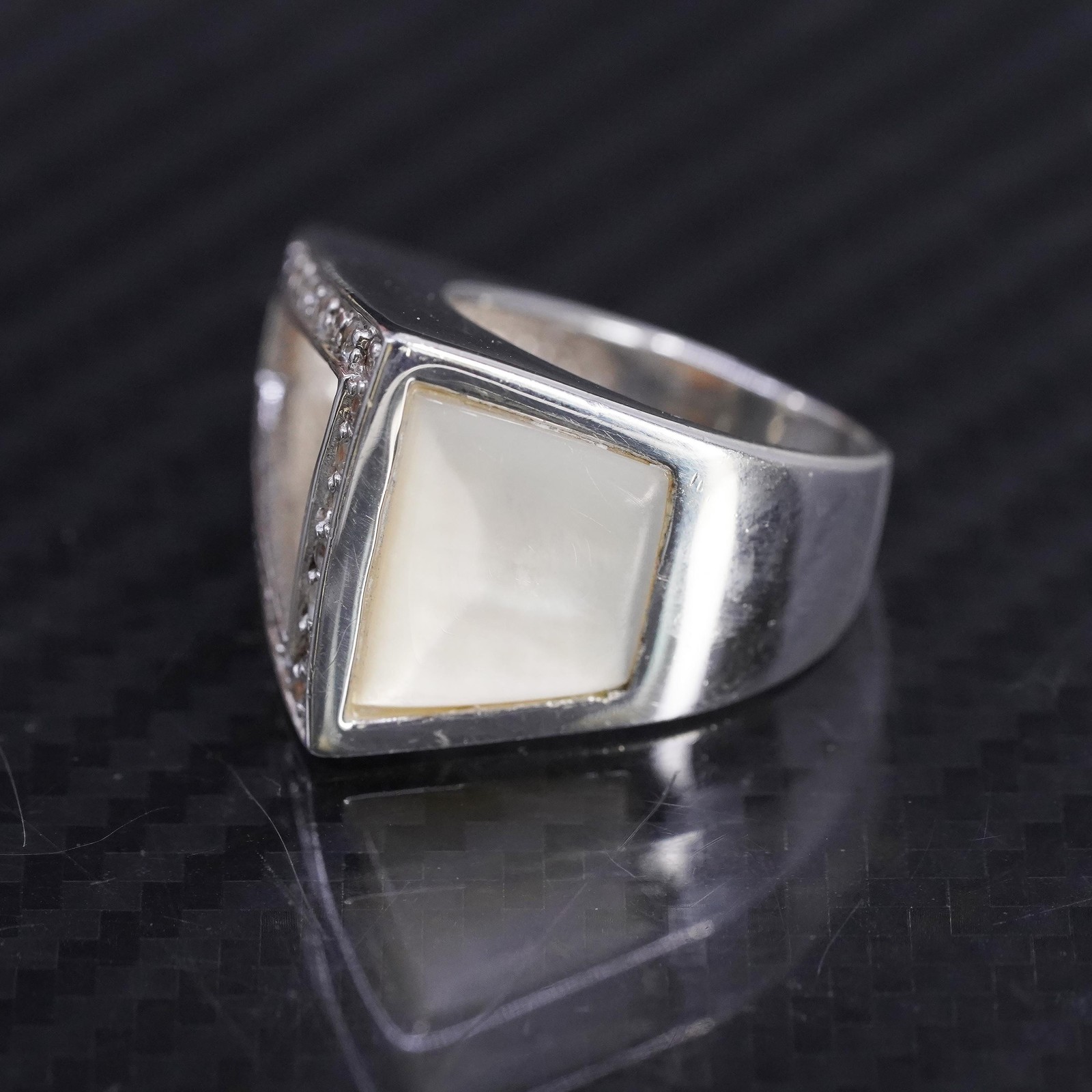 как выглядит Size 6, vintage sterling silver 925 statement band ring with cluster cz фото