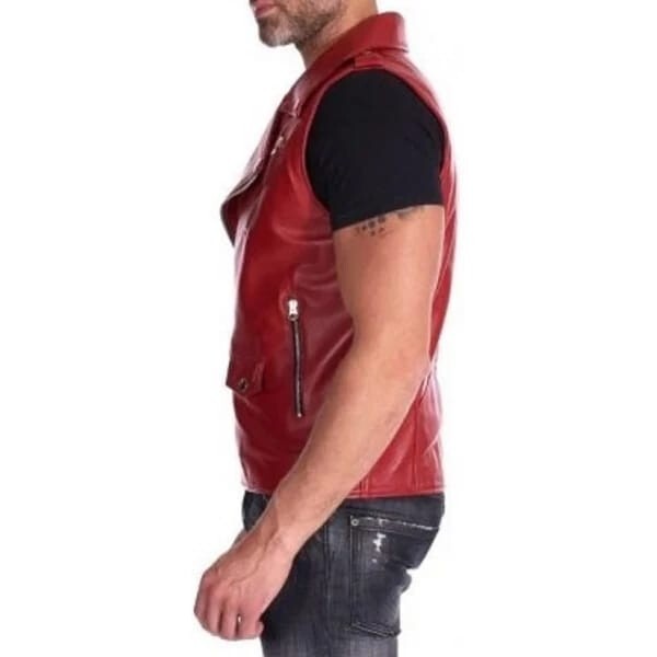 как выглядит New Mens Biker Zipper Pockets Genuine lambskin Leather Red Vest Jacket фото