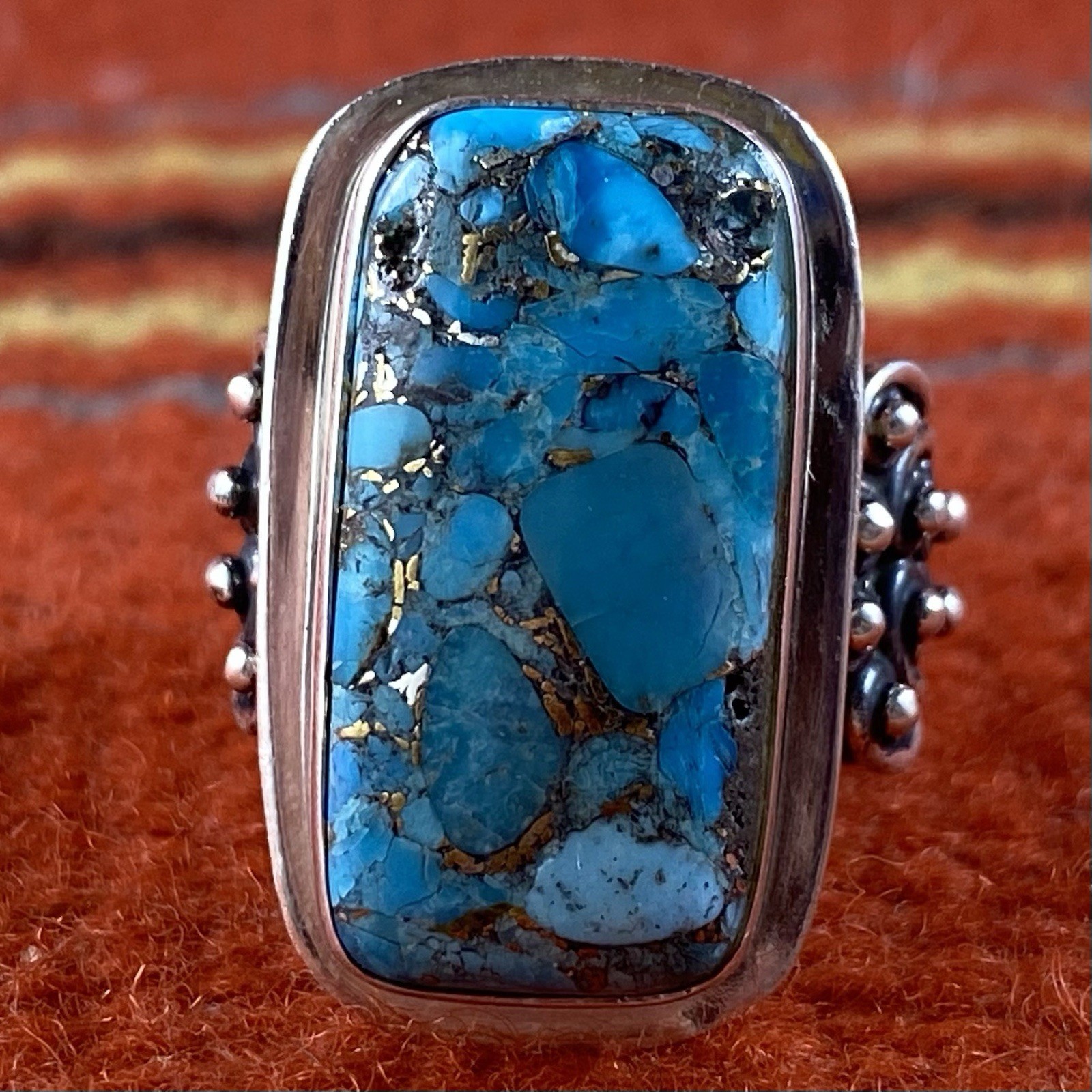 как выглядит Sterling Silver Turquoise Chunky Domed Wide Band Ring YS INDIA SZ 8 фото