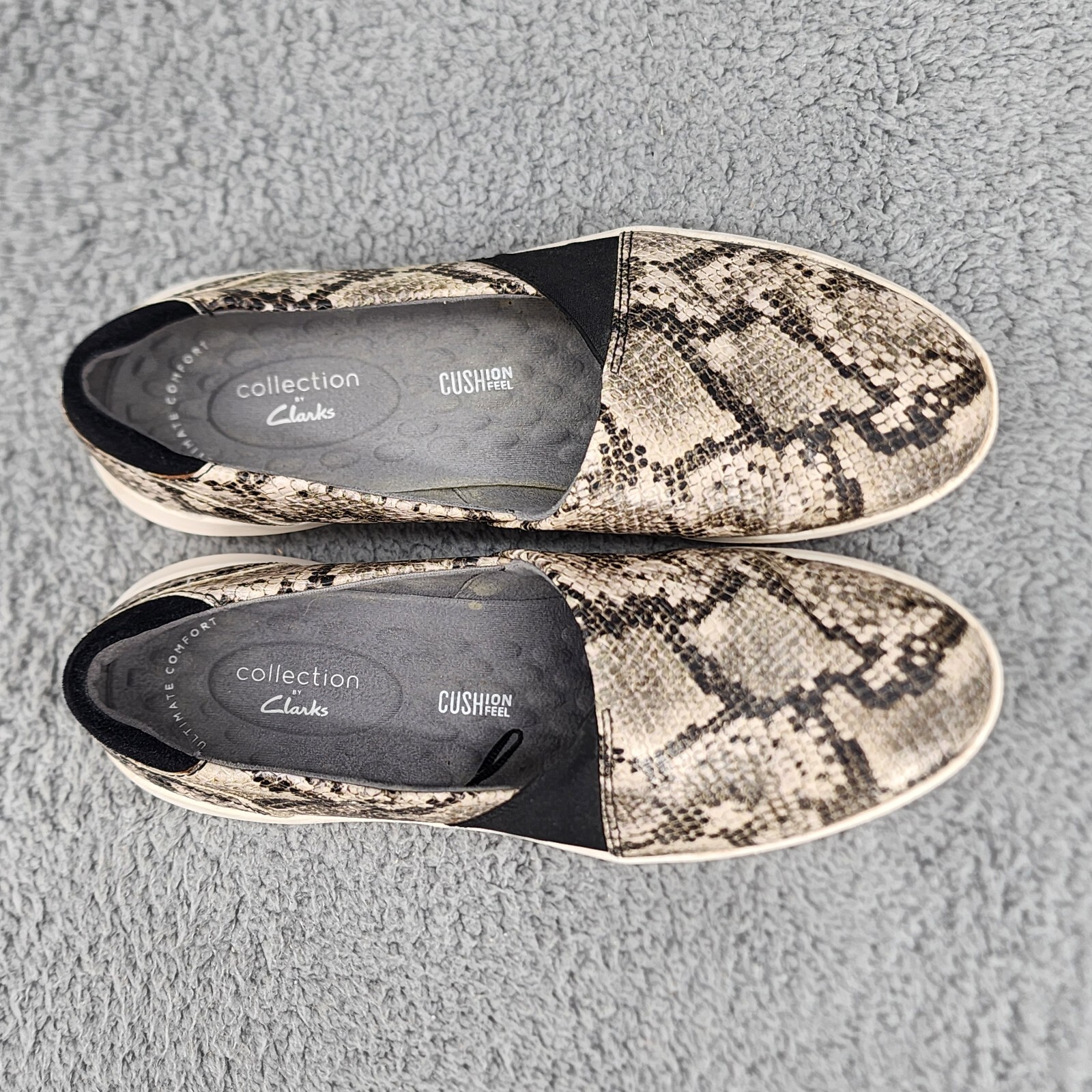 Clarks Women's Loafers Sz 8 Snake Print Leather Slip On Comfort Shoes Office