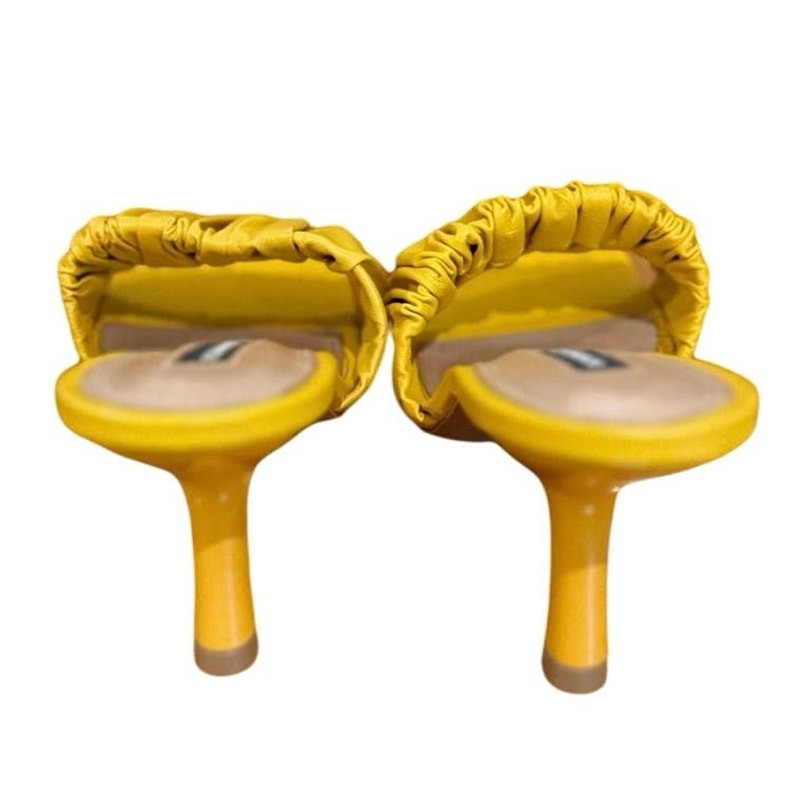 как выглядит BCBGMaxAzria NWOB Dallas Scrunched Leather Sandal Heels In Tuscany Yellow Size 8 фото