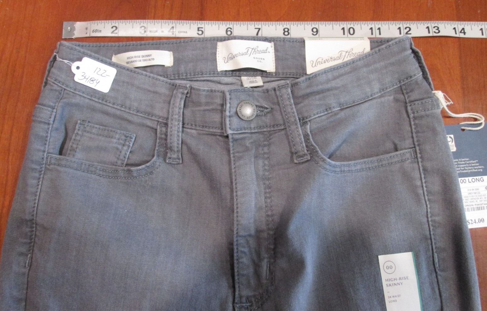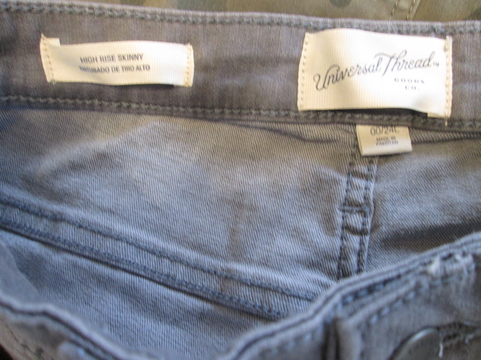 NWT Universal Thread Gray High Rise Skinny Jeans Women Size 00 Stretch 122-34184