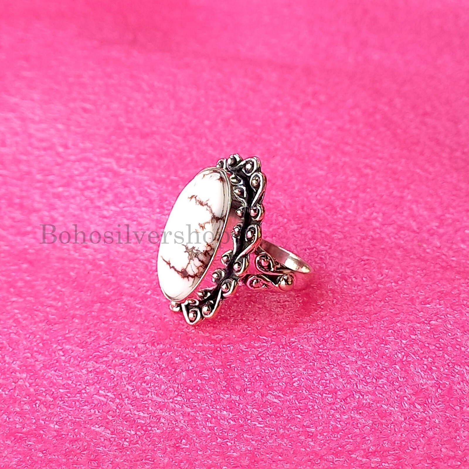 White Howlite Gemstone 925 Sterling Silver Handmade Women Rings Jewelry 289