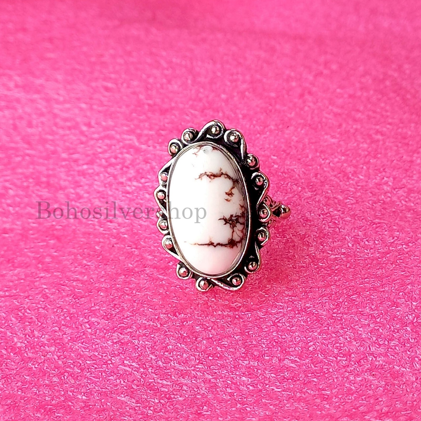 как выглядит White Howlite Gemstone 925 Sterling Silver Handmade Women Rings Jewelry 289 фото