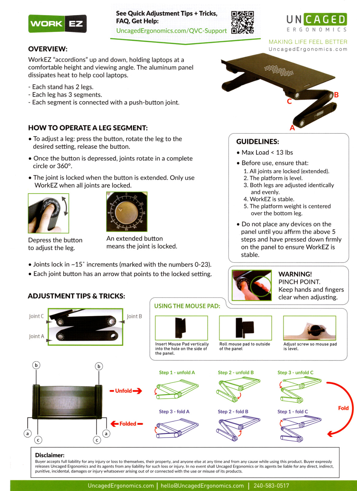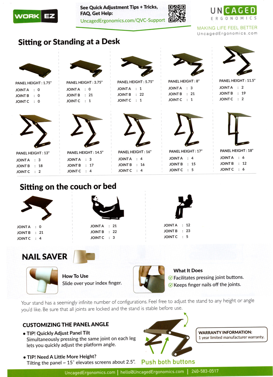 WorkEZ Best XL Adjustable Laptop Stand Lap Desk - White - Ergonomic Design