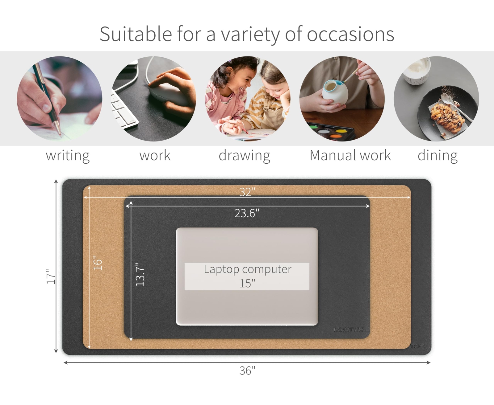 Desk Pad Cork PU Leather Desk Mat Large Mouse pad Non-Slip Desk Protector a...