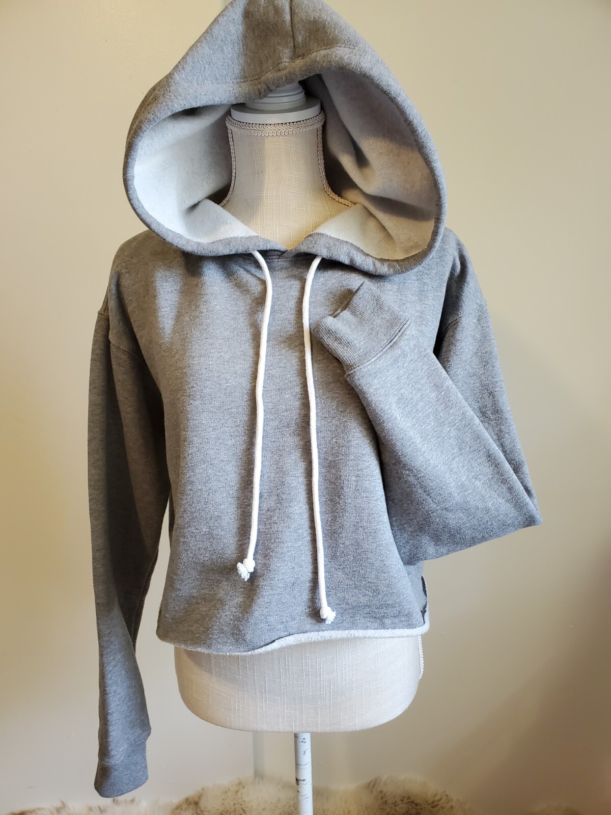 как выглядит New Wild Fable Womens Size Small Gray Cropped Hooded Sweater Raw Hem Fleece фото
