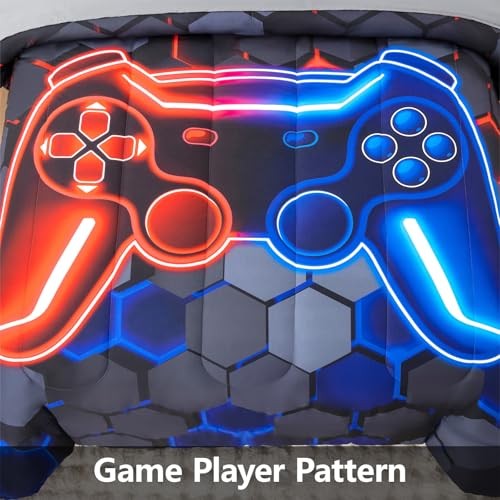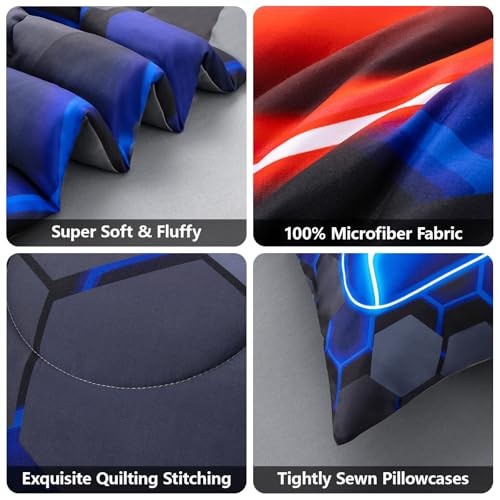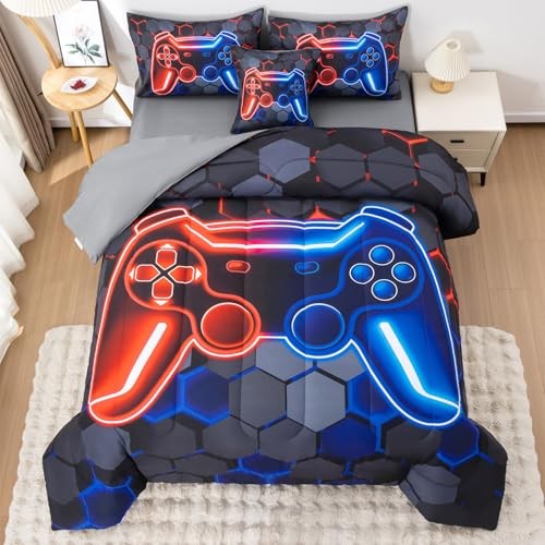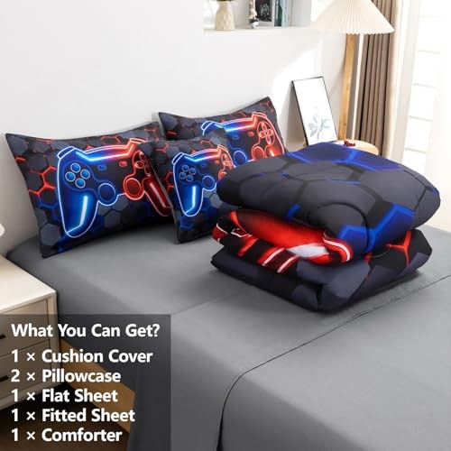 6Pcs Gamer Comforter Set with Sheets for Boys Girls Kids Twin 6 pc Red/Blue