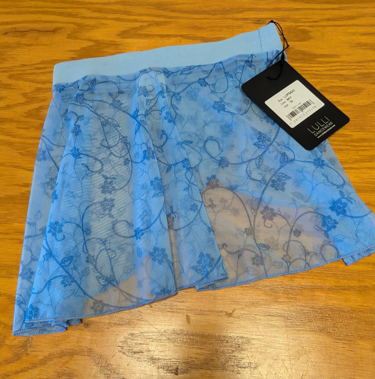 Luli Dancewear Sheer Blue on Blue Floral Faux Wrap Pull On Ballet Skirt Girls