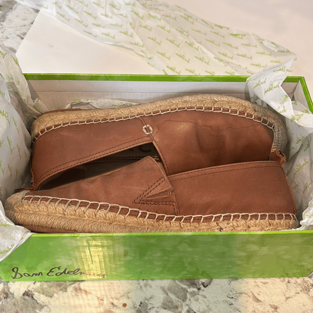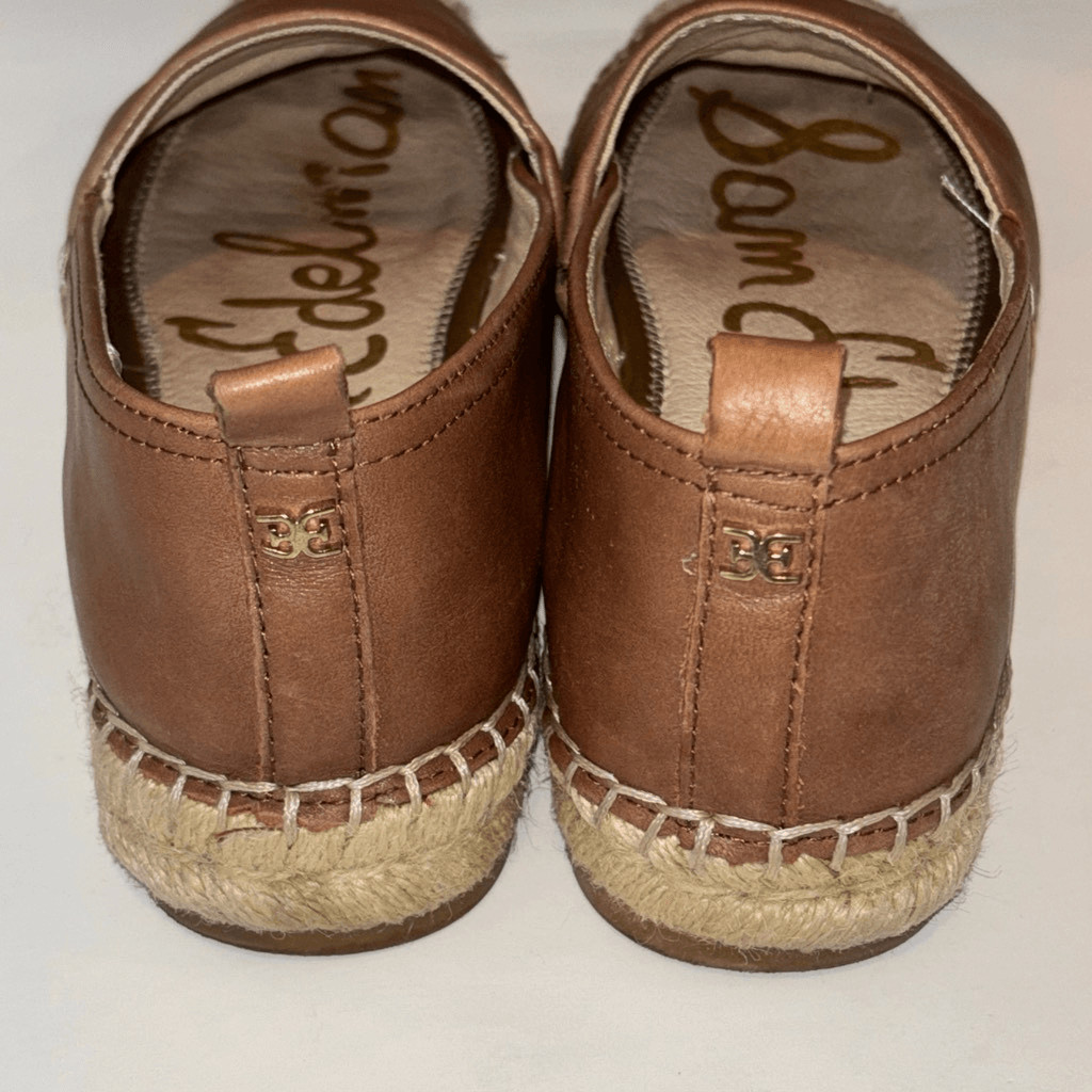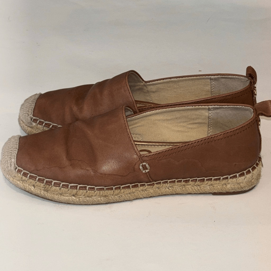Sam Edelman Khloe Espadrille Leather Flats comfort Sz 6 1/2 tan brown slip on
