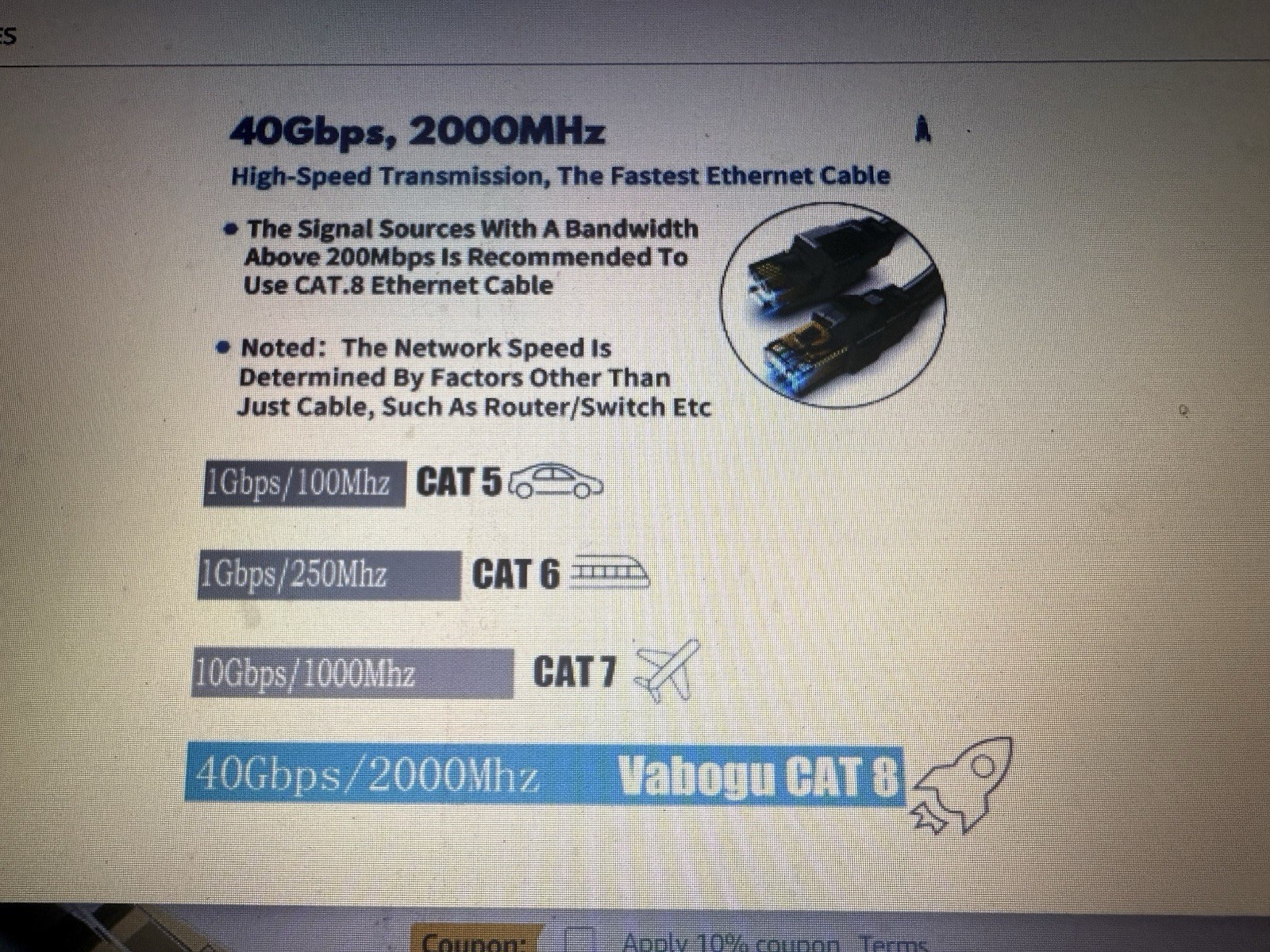 MPN: Cat-8-Ethernet-40Gbps-2000Mhz-Cable-Black