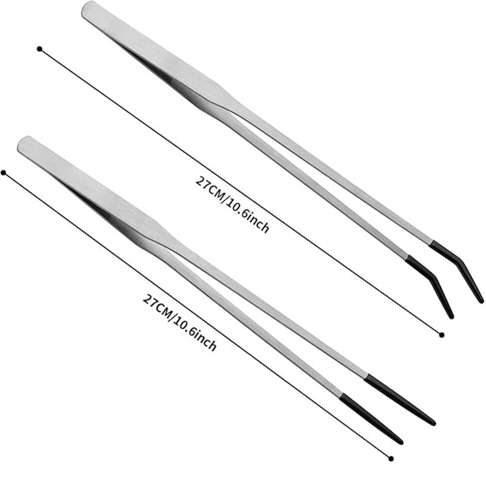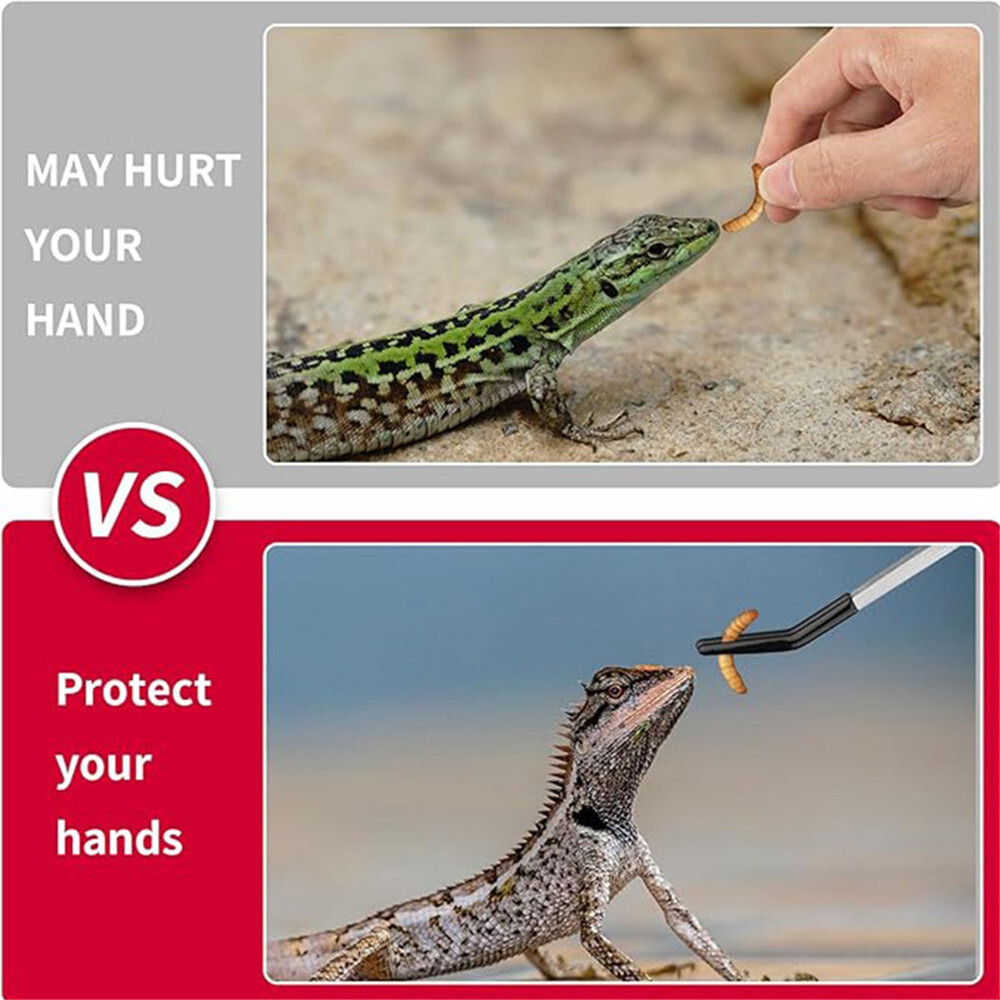 2PCS Stainless Steel Reptile Feeding Tongs with Rubber Tip, 10.6 Straight Cur