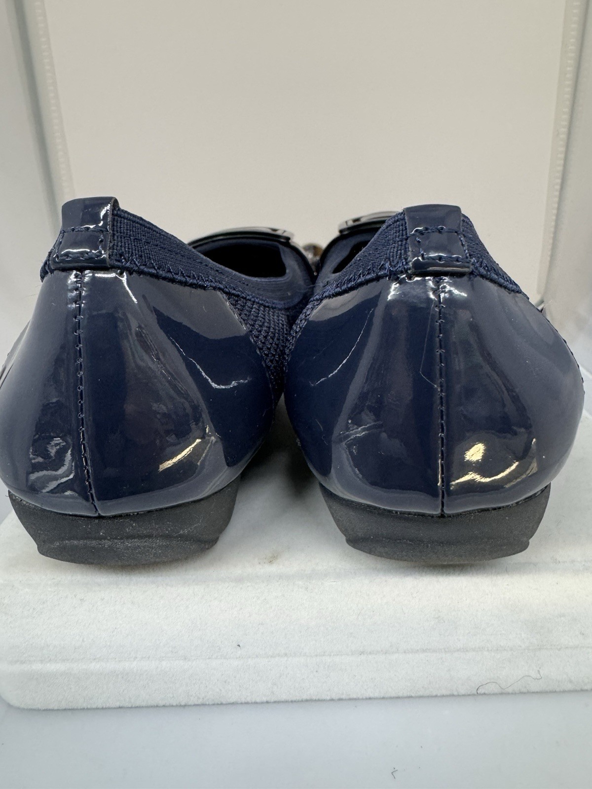 Anne Klein Akunice Navy Wmn 9M Patent Toe Heel Ballet Flats Comfort Shoe I Flex