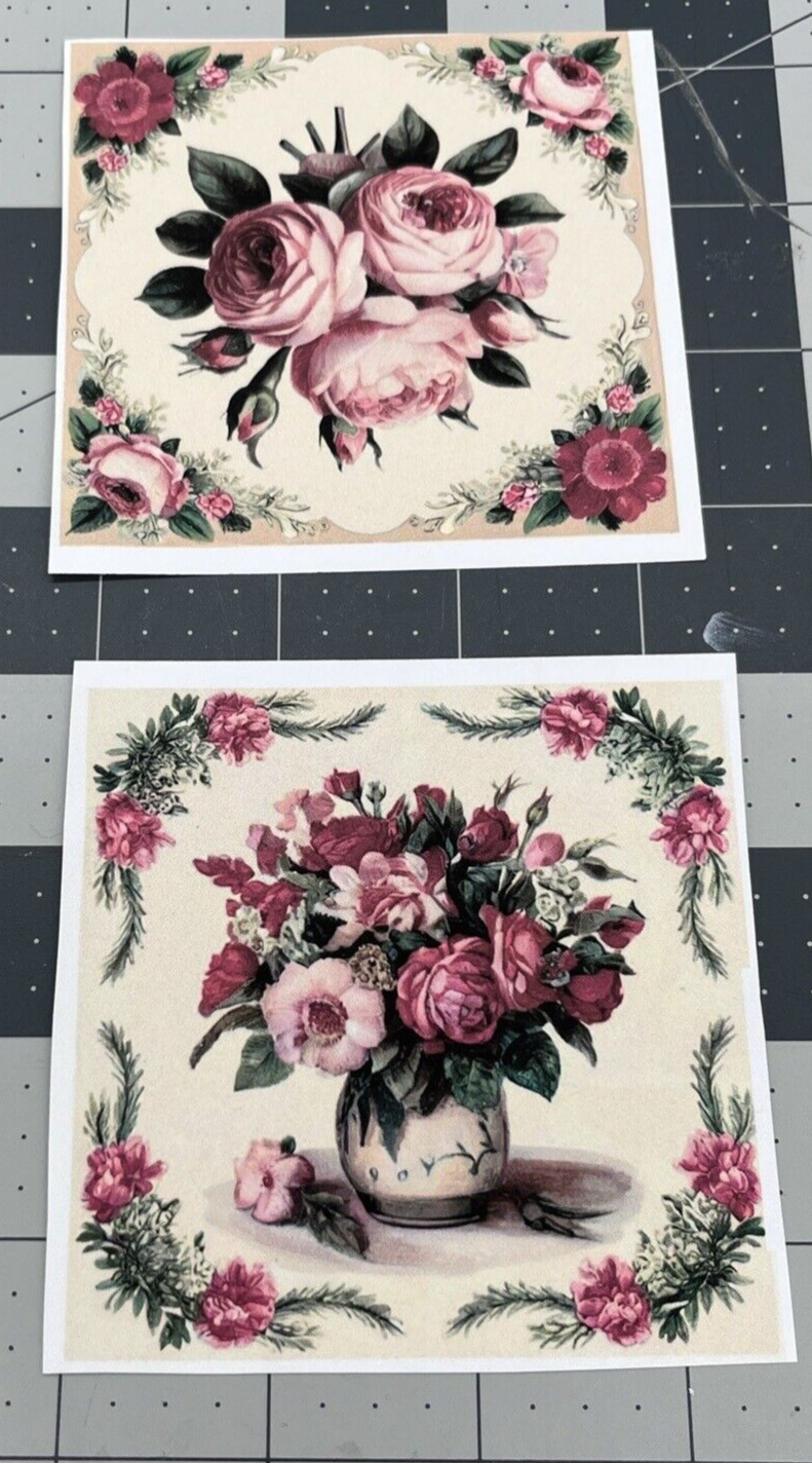 6 Vintage Pink Floral Card Toppers Collage Supplies Scrapbooks Junk Journal
