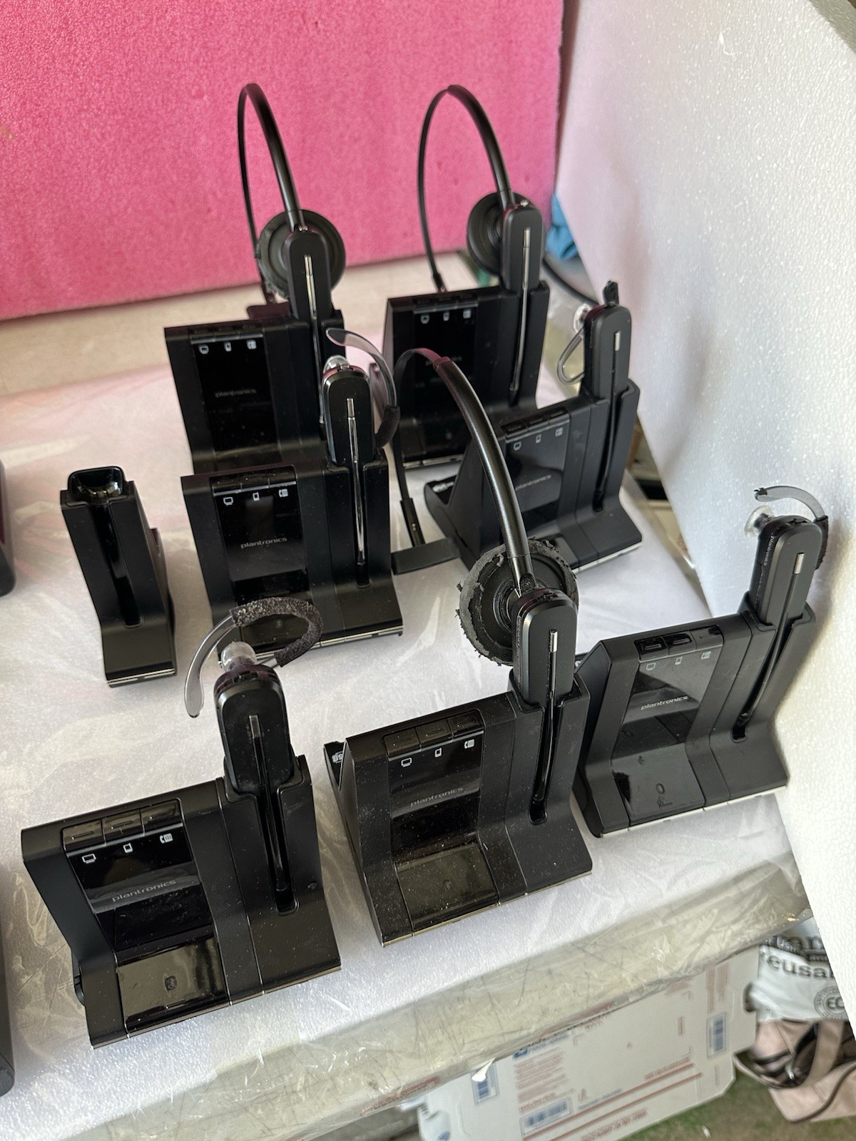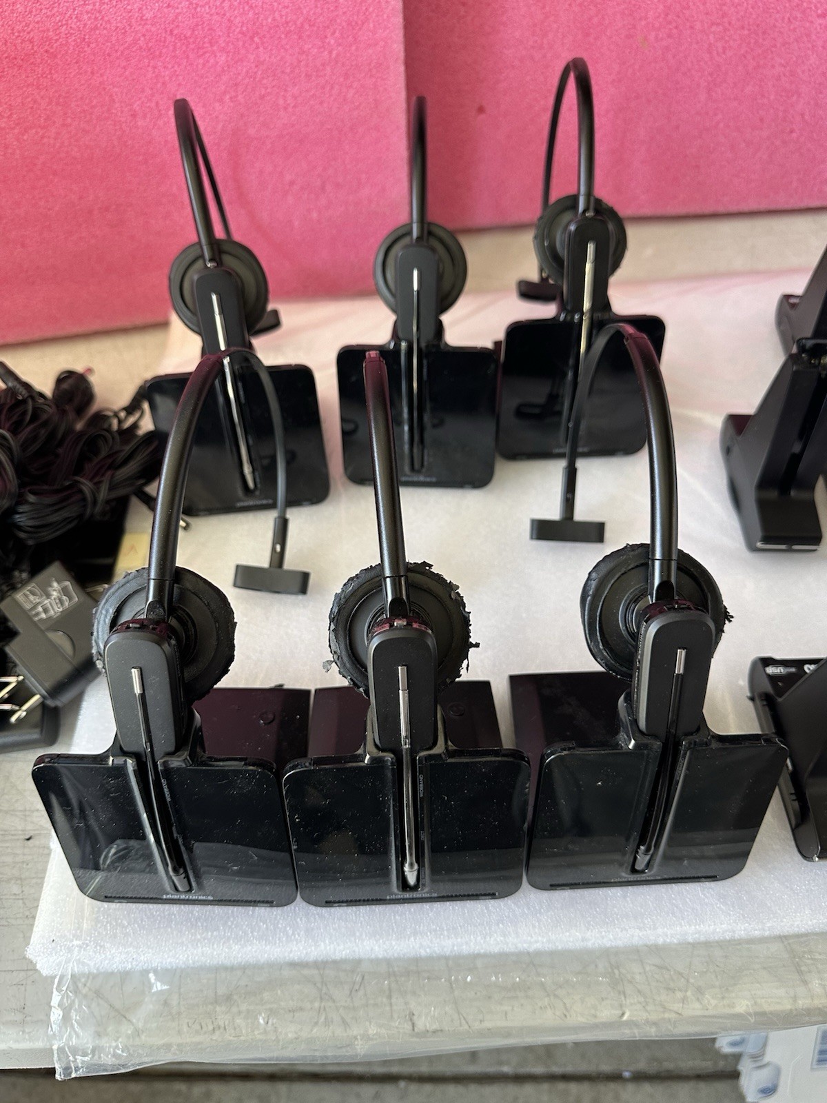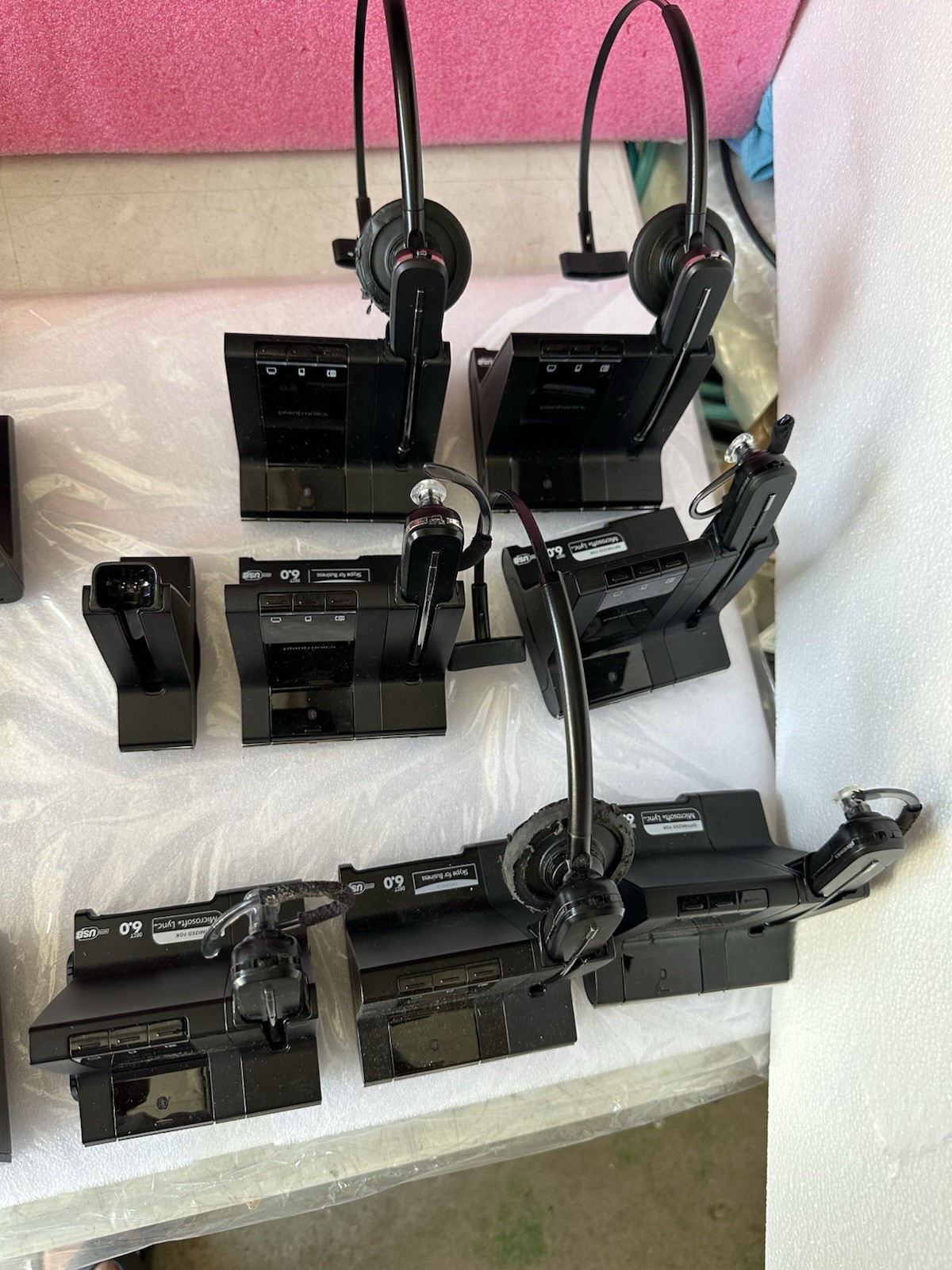как выглядит Lot of 13 Plantronics 6/C054 Wireless Headsets 7/W02 /W Charging Base Stations фото