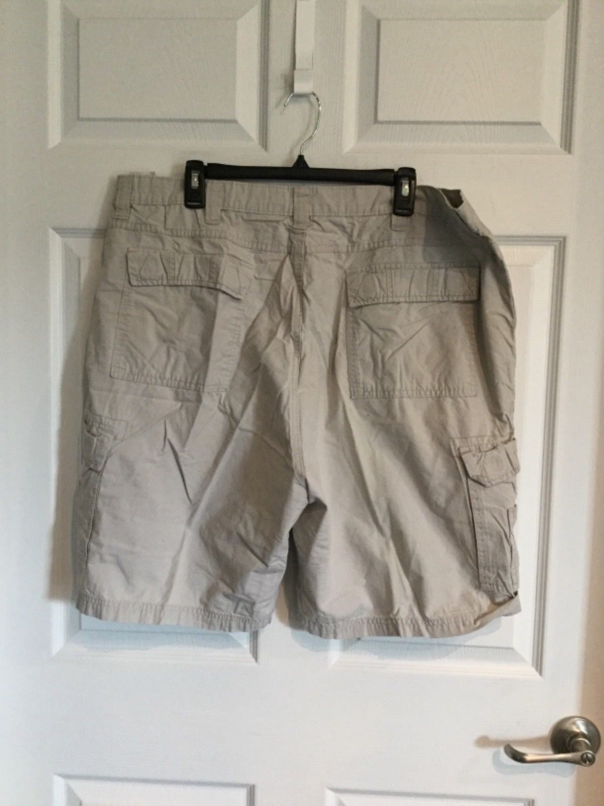 как выглядит Wrangler Men s 42 Cargo Shorts beige 100 cotton Pockets front and back - фото