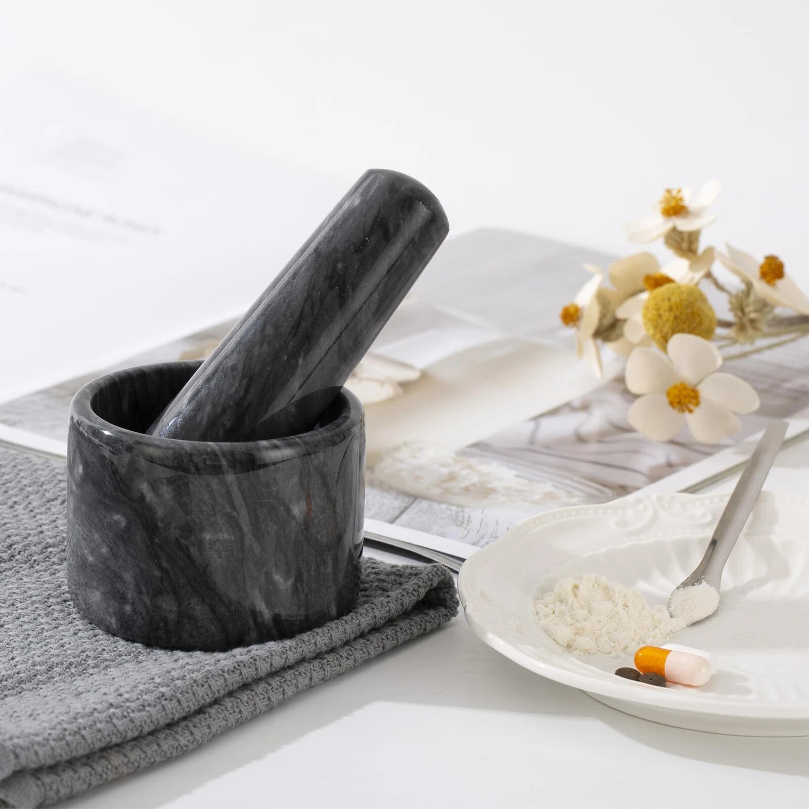 Fasolahome Pill Crusher 3 inch Pill Crusher Grinder Fine Powder Large Marble ...