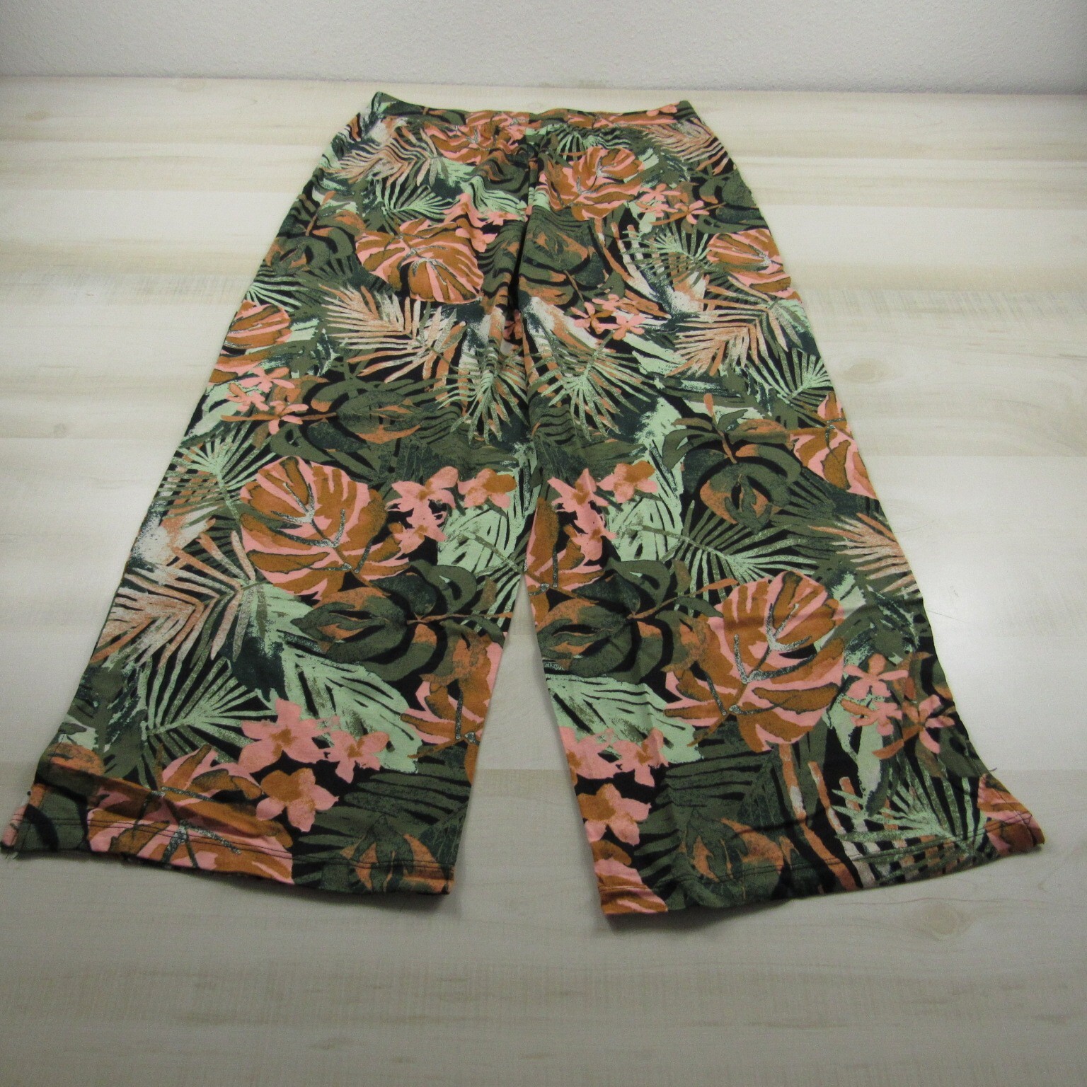 как выглядит Denim Co Pants Womens Small P Black Green Floral Beach Wide Leg Jersey d co A1 фото