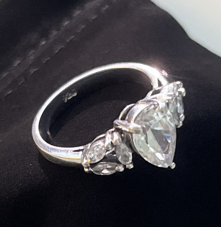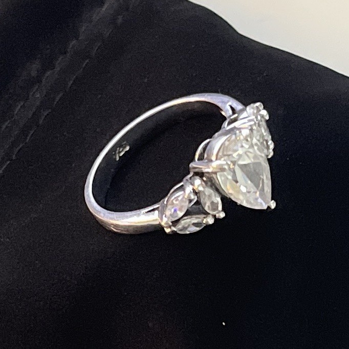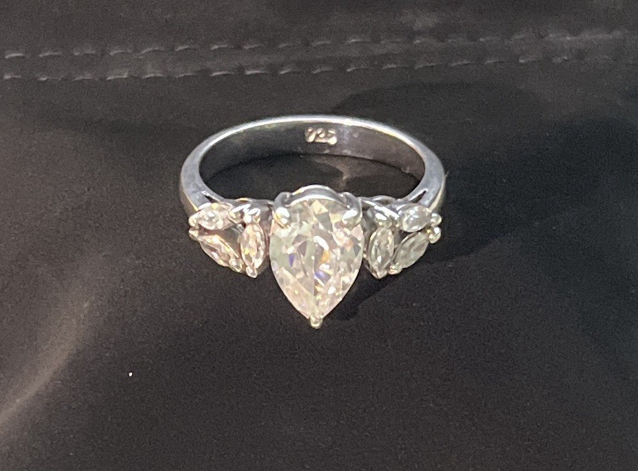925 sterling silver ring featuring a pear-cut cubic zirconia CZ center stone