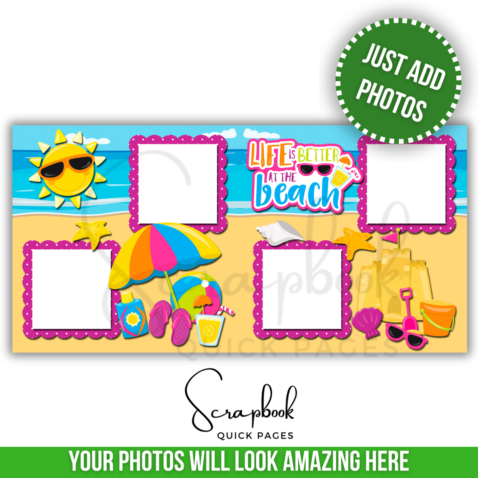 Beach Summer Boy Girl Scrapbook Pages PRINTED Premade Scrapbook Quick Pages 128