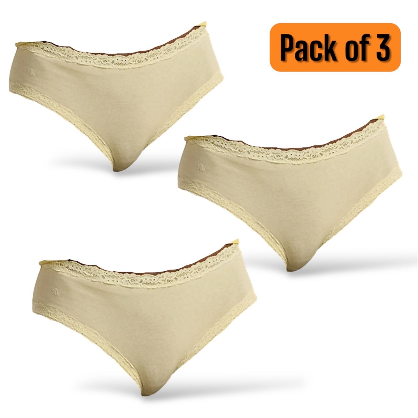 Pack of 3 Lauren Ralph Lauren Womens Cotton Lace Jersey Bikini Brief Underwear
