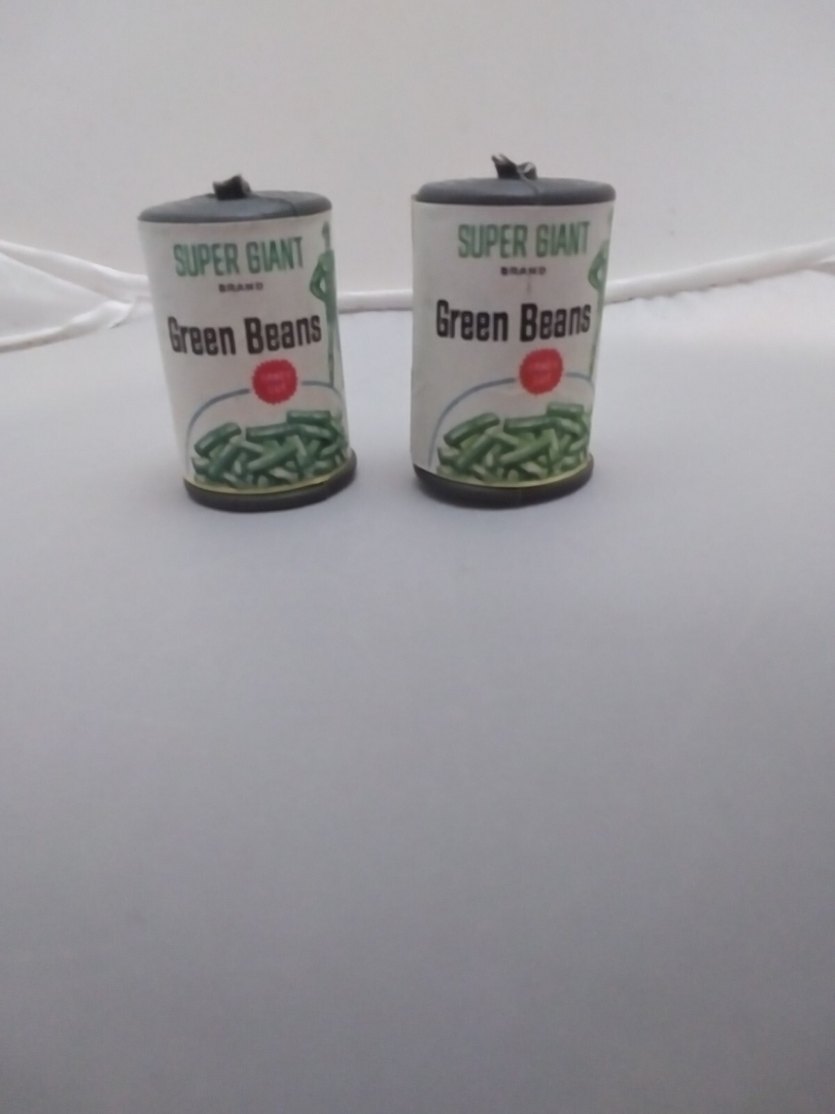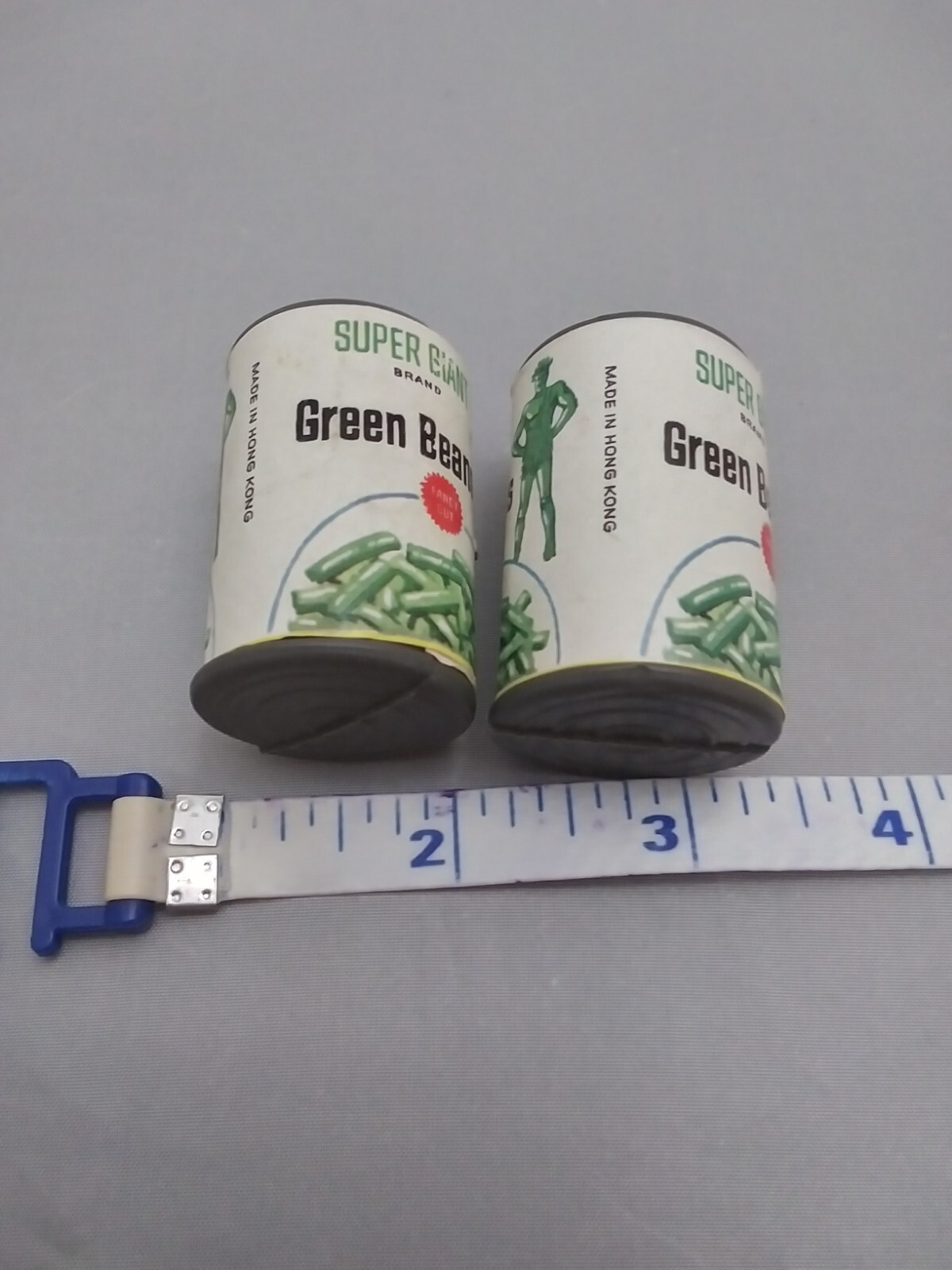 TWO Vintage GREEN GIANT Plastic Cans of Preschool Play Food Toys