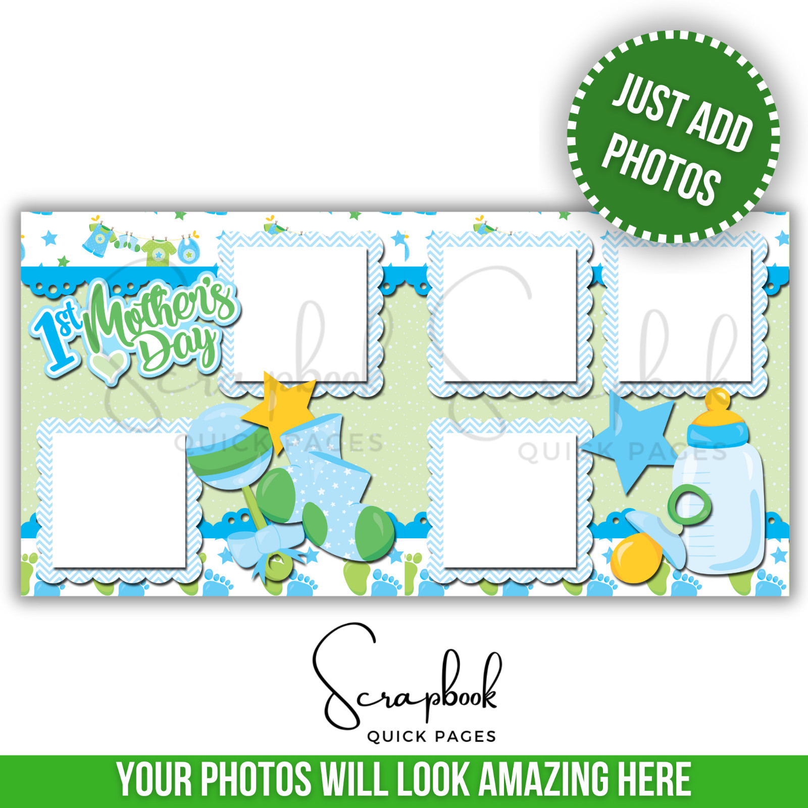 Mother's Day Baby Boy Scrapbook Pages PRINTED Premade Scrapbook Quick Pages 159