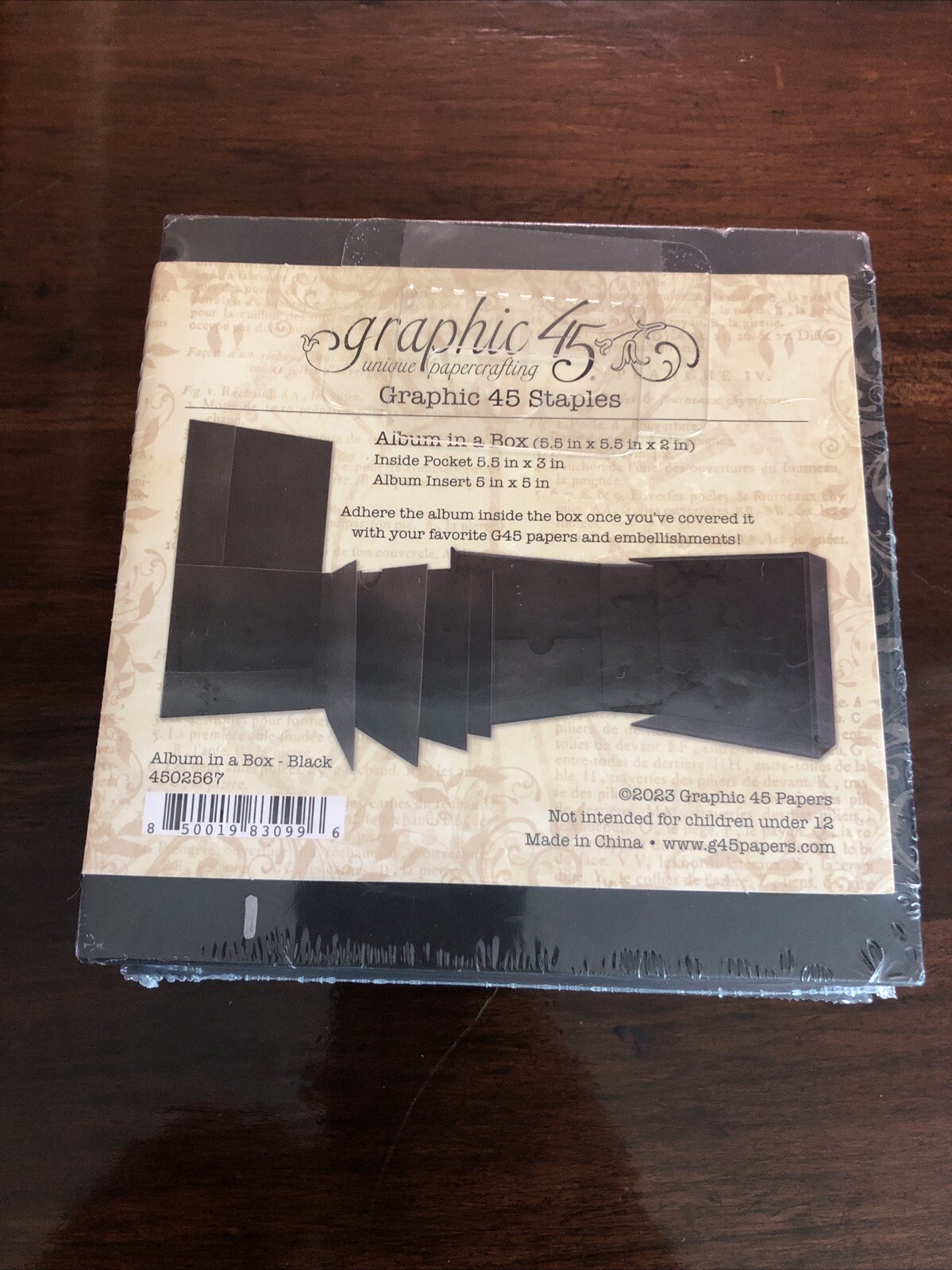 Graphic 45 BLACK ALBUM IN A BOX 5.5 x 5.5 x 2 inch scrapbooking ALBUM BOX