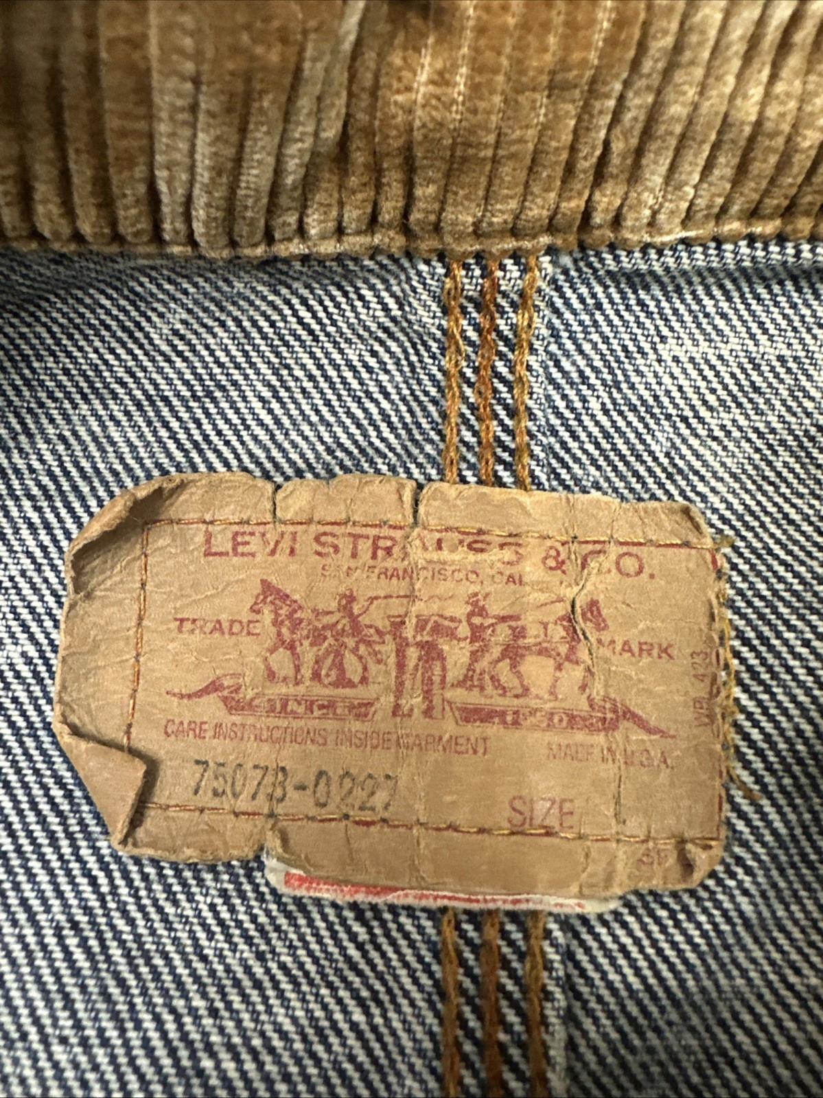как выглядит Levis Denim Trucker Jacket 80s Vintage Corduroy Back Belt Size L Made In USA фото