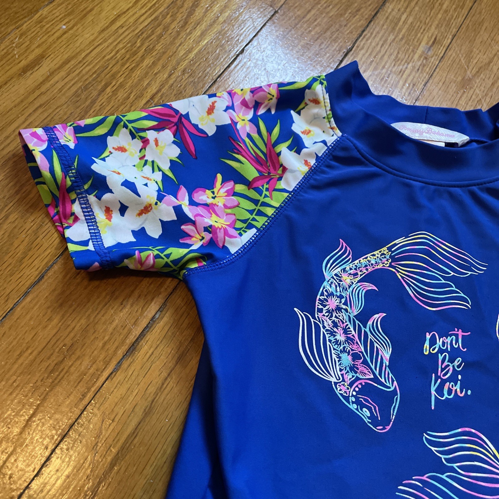 Tommy Bahama Girls Sz 6 Swim Sun Shirt Rashguard Floral Koi Fish Don t Be Koi